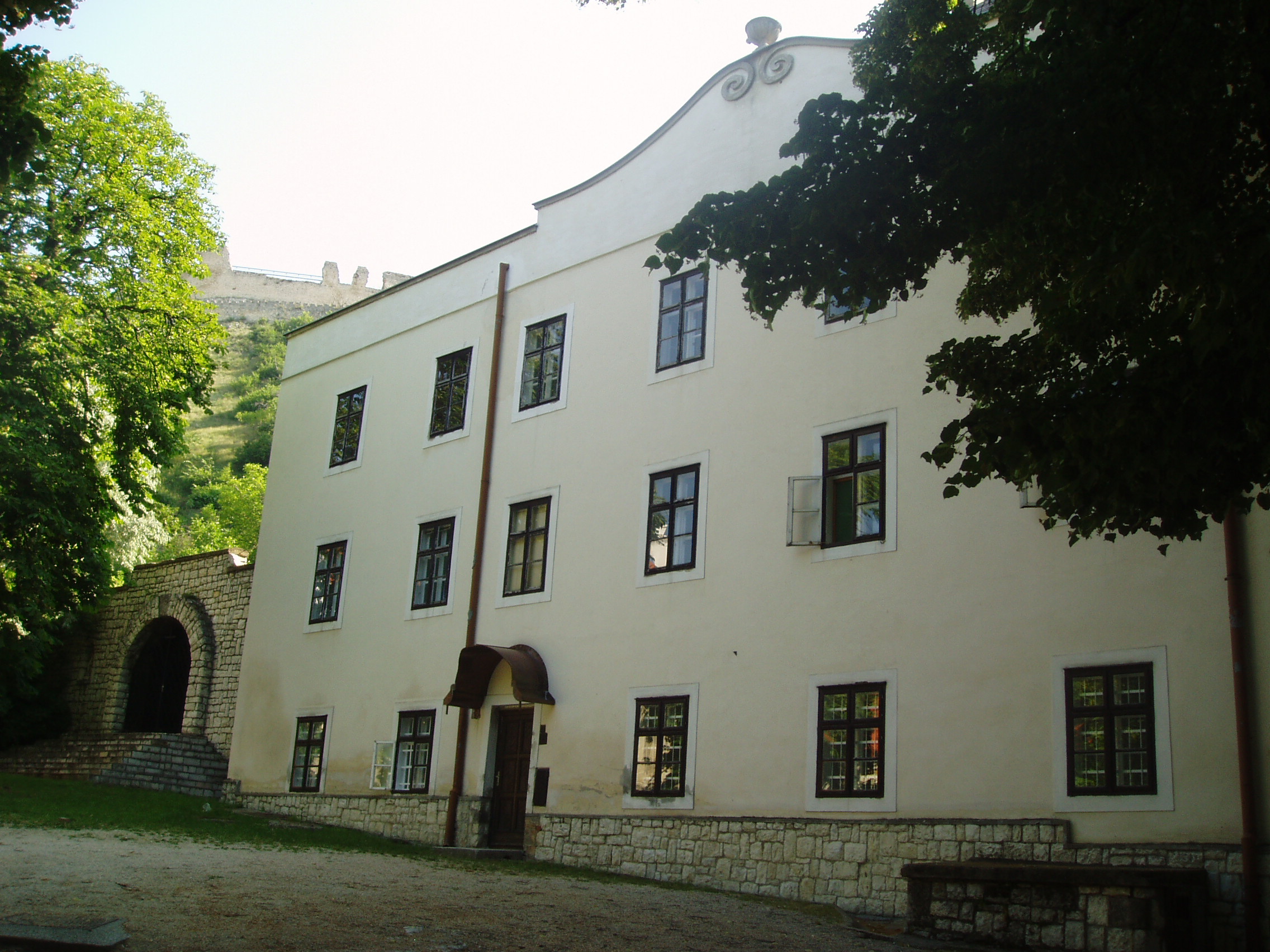 Nyilvános 1046 | 1957 | Sümeg, Szent István tér 7. Ferences kolostor | A ferences kolostor és templom épülettömbje a vár után (lásd: Sümeg, Vár) Sümeg legrégibb műemléke. A ferences atyákat a XVII. közepén Széchenyi György püspök hozta Sümegre a török elől idemenekült lakosság kedvéért. 1649 körül először az egyhajós, akkor még torony nélküli templom épült meg. A hozzá tartozó vastag falú, erődítmény jellegű kolostor néhány évvel később lett készen. Második emelettel az 1720-as években bővítették ki. Az egész épületegyüttest 1949 körül számottevően átalakították, a kolostor barokk homlokzatát bevakolták. A XVII. századi rendházra kívülről csupán a kapu fölé helyezett Széchenyi-címeres, 1652-ből származó feliratos kőtábla emlékeztet, amely a barokk stílus egyik legrégibb hazai emléke. Itt működött a XVII. századi ellenreformáció egyik fontos dunántúli központja. A szerzetesek járták a végvárakat és falvakat, s fejtettek ki térítő, illetve szociális tevékenységet, a kolostorban pedig messze vidéken híres hitvitákat tartottak. A lakosság kedvelte a ferences atyákat, akik a szegénység vállalása mellett a tudomány művelői, egyes tagjaik pedig a haza védelmében vitéz kardforgatók voltak. A fénykép 2007 júniusában készült. Felh. irod.: Koppány Tibor - Kozák Károly: Sümeg útikalauz. Veszprém, Idegenforgalmi Hivatal, 1965 Látnivalók Veszprém megyében. Miskolc, Well-PRess, 2004 Sümegi kalauz. Sümeg, Sümegi Fórum alapítvány, 1993 Hőgyész László: Sümeg évszázadai. Veszprém, 1989 |