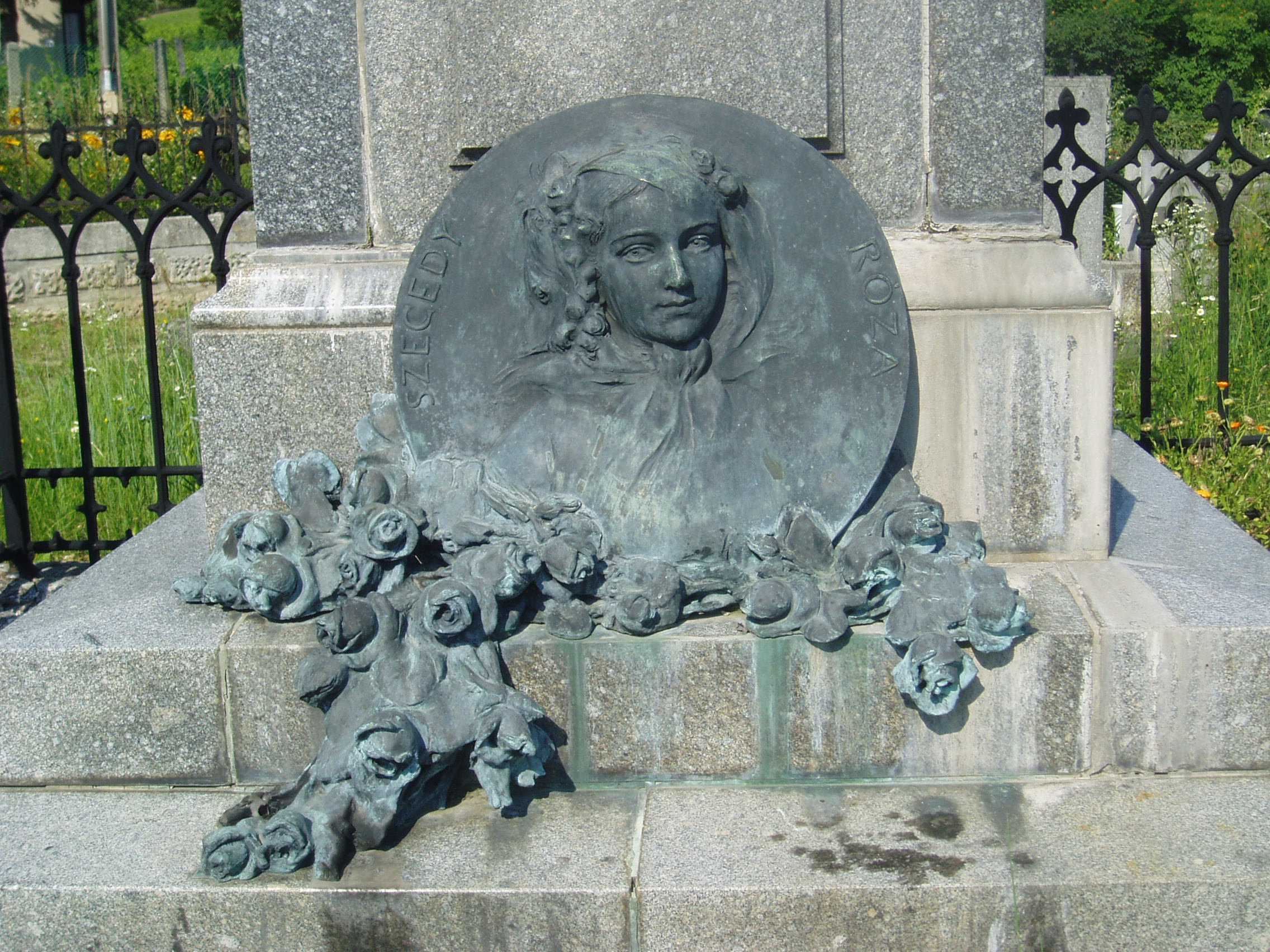 Nyilvános 1175 | 2047 | Sümeg, Temető. Kisfaludy Sándor és Szegedi Róza sírja | Sümeg délkeleti határában, a Tapolcára vezető út mellett emelkedő lankás domboldalon találjuk a város köztemetőjét. Helyét még Bíró Márton püspök jelölte ki; jelentősebb számban a XIX. század eleje óta kezdtek ide temetkezni. A temetődomb tetején áll az 1816-ban épített, későbarokk stílusú temetőkápolna. Körülötte a sümegi élet utolsó két évszázada szinte valamennyi híres személyiségének sírja fellelhető. A temető leglátogatottabb síremléke Kisfaludy Sándor (1772-1844) és felesége, Szegedy Róza (1775-1832) sírja. A korábban elhunyt Szegedy Róza földi maradványait az 1900-as évek elején helyezték át férje sírjába. Akkor már a költő sem eredeti helyén nyugodott, erre a díszsírhelyre 1869-ben hozták át koporsóját. A timpanonos lezárású szürke gránit sírkövet megkoronázó Kisfaludy Sándor-mellszobor Gerenday Antal 1869-ben készített alkotása. A sír háromlépcsős talapzatának középső fokára helyezték Szegedy Róza lépcsőre hulló rózsákkal díszített portrédomborművét, amelyet Istók János készített 1904-ben. A fénykép 2007 júniusában készült. Felh. irod.: Koppány Tibor - Kozák Károly: Sümeg útikalauz. Veszprém, Idegenforgalmi Hivatal, 1965 Sümegi kalauz. Sümeg, Sümegi Fórum Alapítvány, 1993 Miklósi-Sikes Csaba: Kőbe vésett történelem. A sümegi városi temetők története és sírjelei 1950-ig. Sümeg, Sümegi Fórum Alapítvány, 2002 Veszprém megyei életrajzi lexikon. Veszprém, Veszprém Megyei Önkormányzat Közgyűlése, 1998 |