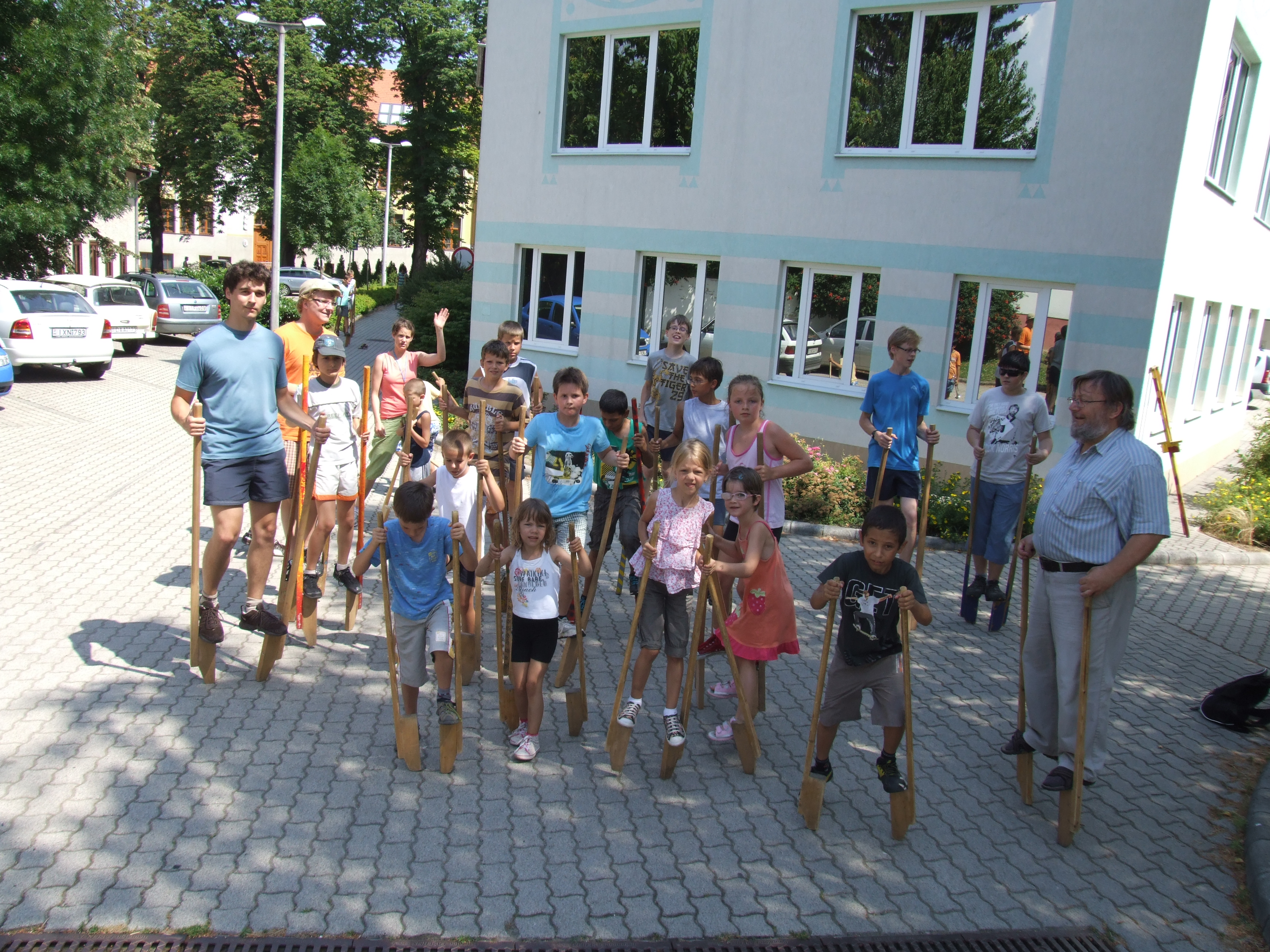 Olvasótábor 2013 résztvevők és piaristák gólyalábaznak