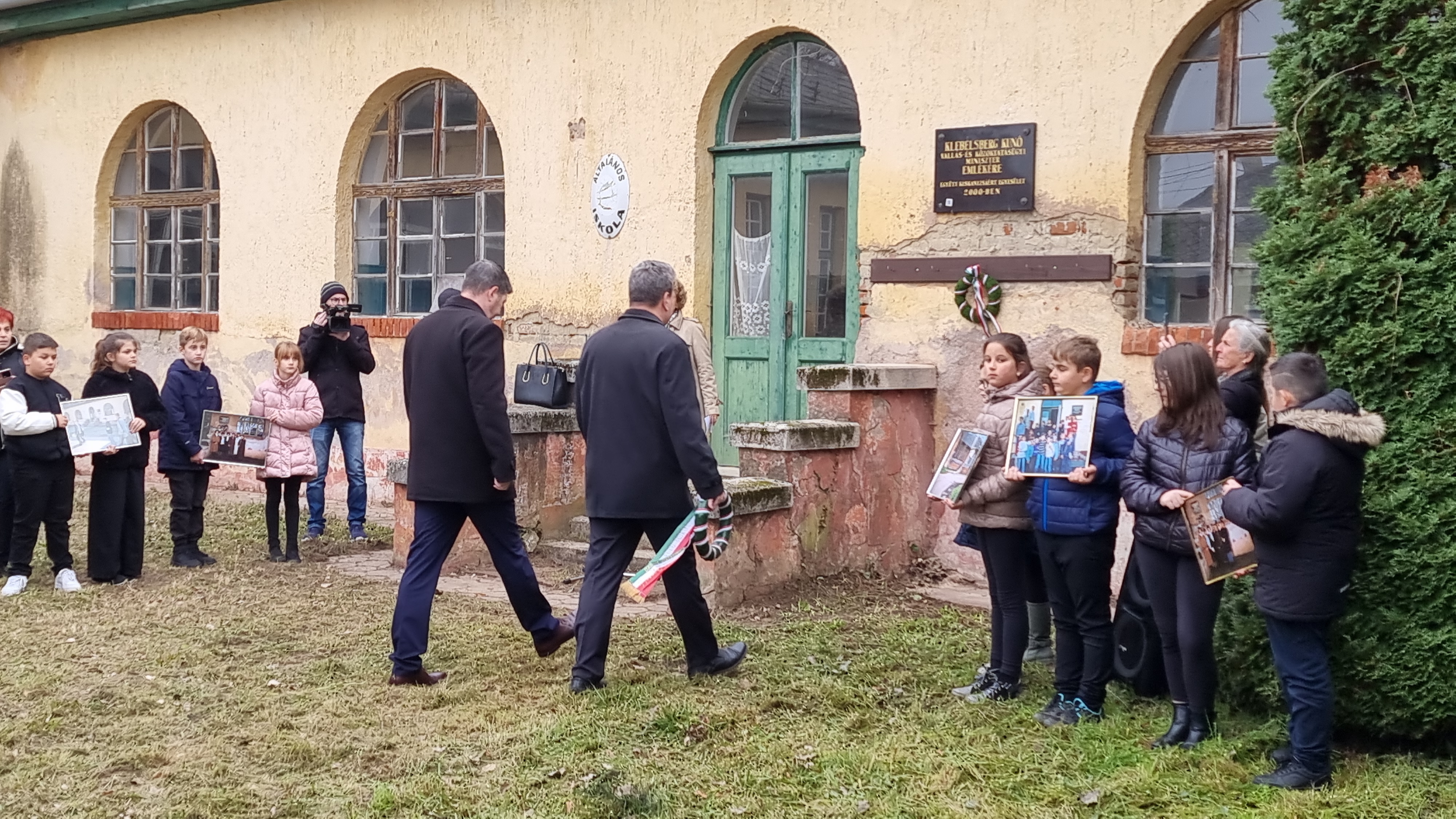 2025.11.11. Klebelsberg Kunó emléktábla koszorúzás és QR-kód felragasztás