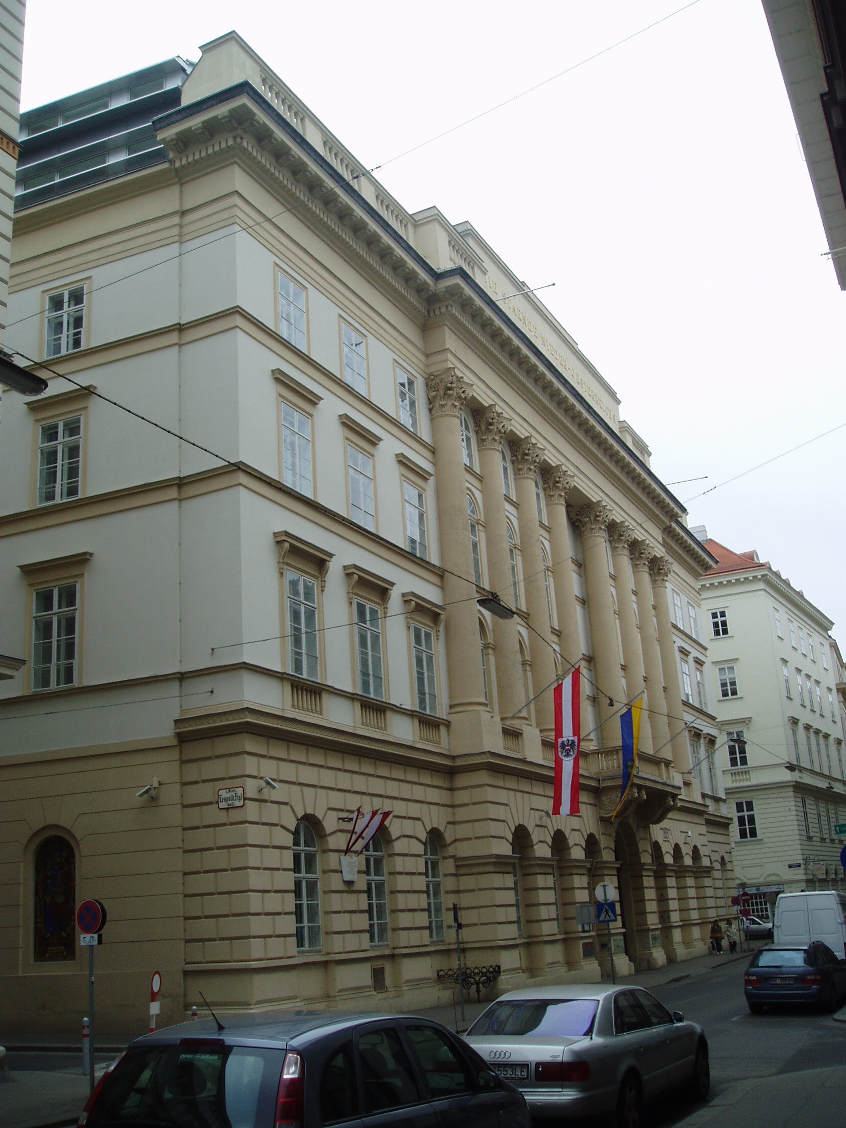 Nyilvános 1874 | 3700 | Rövid leírás | Teljes leírás (609 B) | Herrengasse 13. Landhaus (a régi országház) A hatalmas palota építési ideje nem ismert, de az 1500-as években már állt. Azóta többször átépítették, jelenlegi klasszicista köntösét 1832-48 között kapta. Ebben a palotában ült össze évszázadokon keresztül, I. Miksa uralkodása óta az alsó-ausztriai rendi gyűlés. Ma az alsó-ausztriai kormány hivatala. Klasszicista Festsaal-ja (ünnepi terem) nevezetes hangversenyek színhelye volt. Falai között megfordult Schubert, Beethoven, s itt adta első bécsi koncertjét egy 12 éves magyar csodagyermek, Liszt Ferenc. |