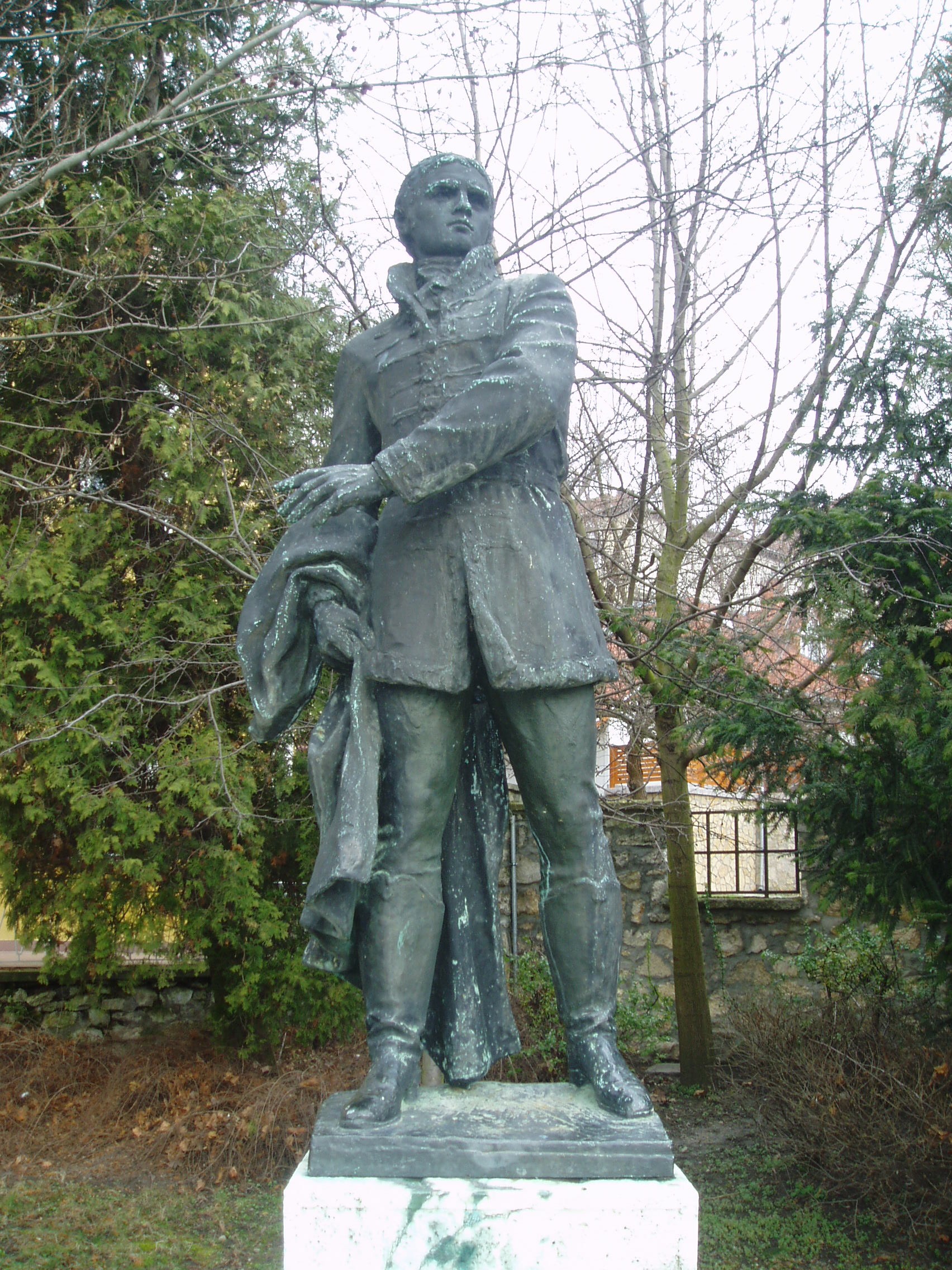 Nyilvános 1438 | 2318 | Tapolca, Batsányi tér: Batsányi János szobra | A Malom-tó melletti sétány északnyugati részén áll a Tapolcán született Batsányi János szobra, Segesdy György 1960-ban felavatott alkotása. Nem messze tőle felesége, Baumberg Gabriella költőnő mellszobra is látható. A fénykép 2007 februárjában készült. Felh. irod.: Látnivalók Veszprém megyében. Miskolc, Well-PRess, 2000 |