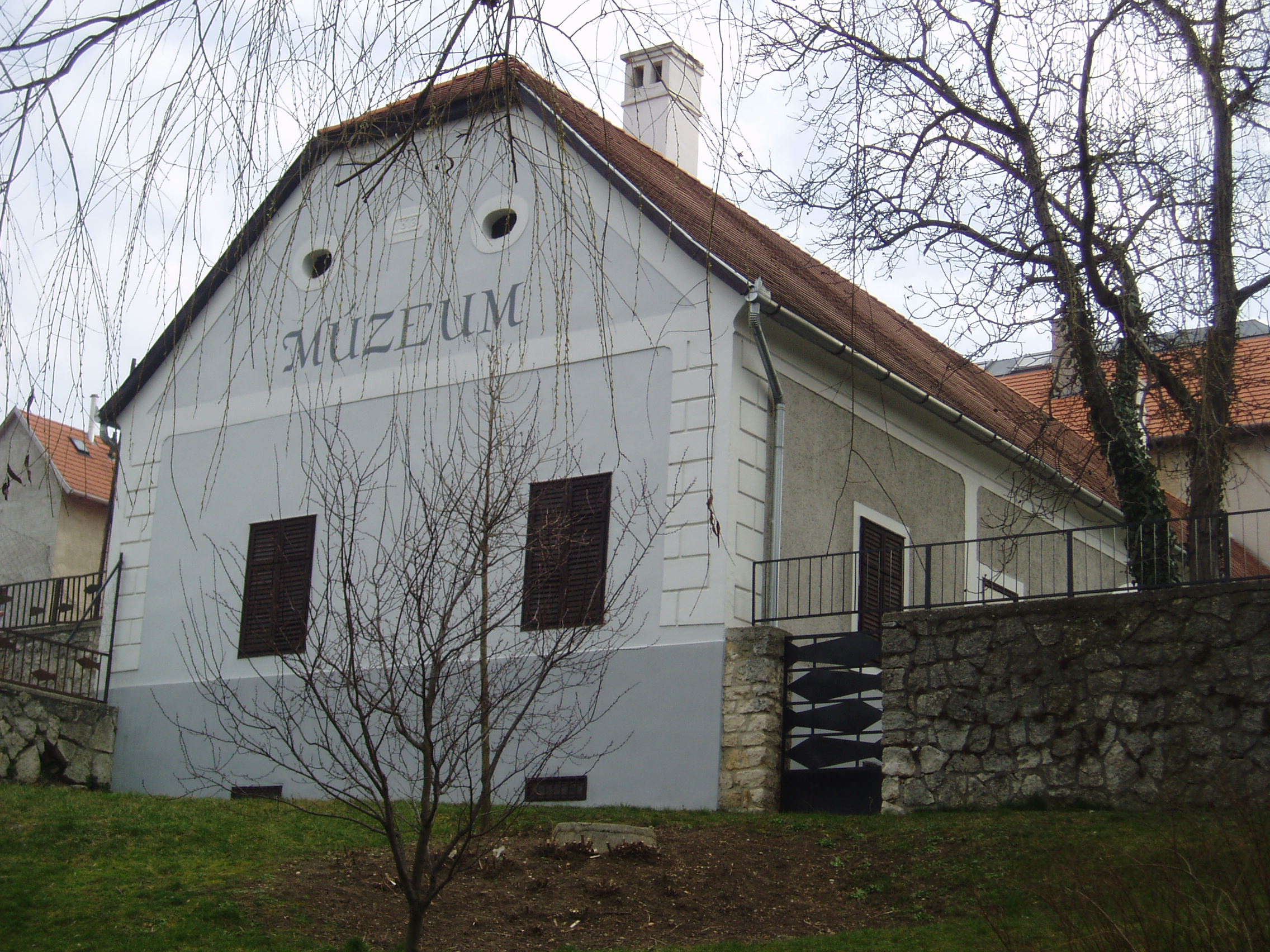 Nyilvános 1466 | 2162 | Tapolca: Templom domb 8. Múzeum | A múzeum épülete, az ún. Kántorház - a város védett építészeti emléke - Tapolca történelmi városközpontjában, a Malom-tó fölötti Templom dombon található. Az épület magja 1773-ban épült iskolának és tanítói lakásnak. Mai küllemének meghatározó jellemzőit, boltíves tornácát az iskola 1813-as kibővítésekor kapta. Ide járt elemi iskolába az 1770-es évek elején a város nagy szülötte, Batsányi János költő. Az iskolában egészen 1884-ig folyt oktatás, később pedig a mindenkori r. k. kántortanító lakott benne. Az épületet 1979/80-ban újíttatta fel a város, s benne Tapolca múzeumát helyezte el. A múzeumban jelenleg iskolatörténeti kiállítás és Batsányi János életét és korát bemutató kiállítás látható (lásd a következő képeket). A felvétel 2007 februárjában készült. Felh. irod.: Látnivalók Veszprém megyében. Miskolc, Well-PRess, 2000 Hangodi László: Múltbanéző - kiállításvezető a Tapolcai Városi Múzeum tárlataihoz. Tapolca, 2006 |