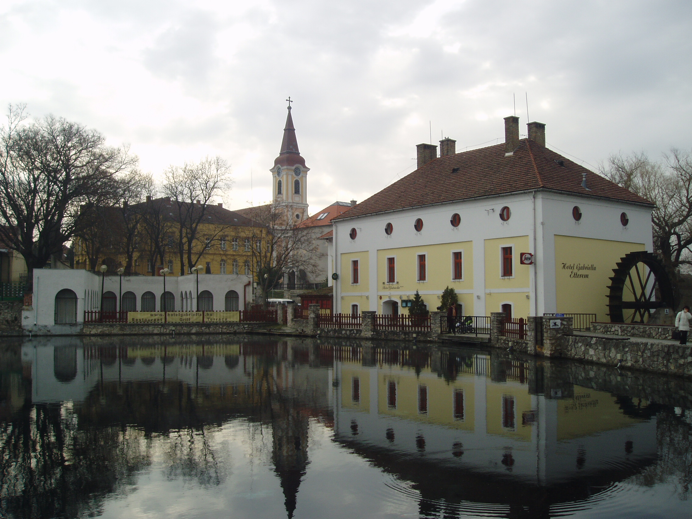 Nyilvános 1467 | 2235 | Tapolca, Malom-tó | A Malom-tó vagy Nagytó és környéke Tapolca ismert, képeslapokon is gyakran szereplő kedves helye. Jobbra az egykori malom szállodává alakított épülete áll, amelyet Batsányi János feleségéről neveztek el. A vízikerék ma is működik. A tó mögött a Templom domb, Tapolca ősi városközpontja látszik. Itt állt egykor a vár, amelynek kapuját és falai egy részét feltárták. A háttérben látszó templom eredetileg román stílusban épült, amelyet később gótikus, majd barokk stílusban átépítettek. Déli külső falán középkori freskótöredéket tártak fel. Ebben a templomban keresztelték meg Batsányi Jánost. A felvétel 2007 februárjában készült. Felh. irod.: Látnivalók Veszprém megyében. Miskolc, Well-PRess, 2000 Hangodi László: Múltbanéző - kiállításvezető a Tapolcai Városi Múzeum tárlataihoz. Tapolca, 2006 |