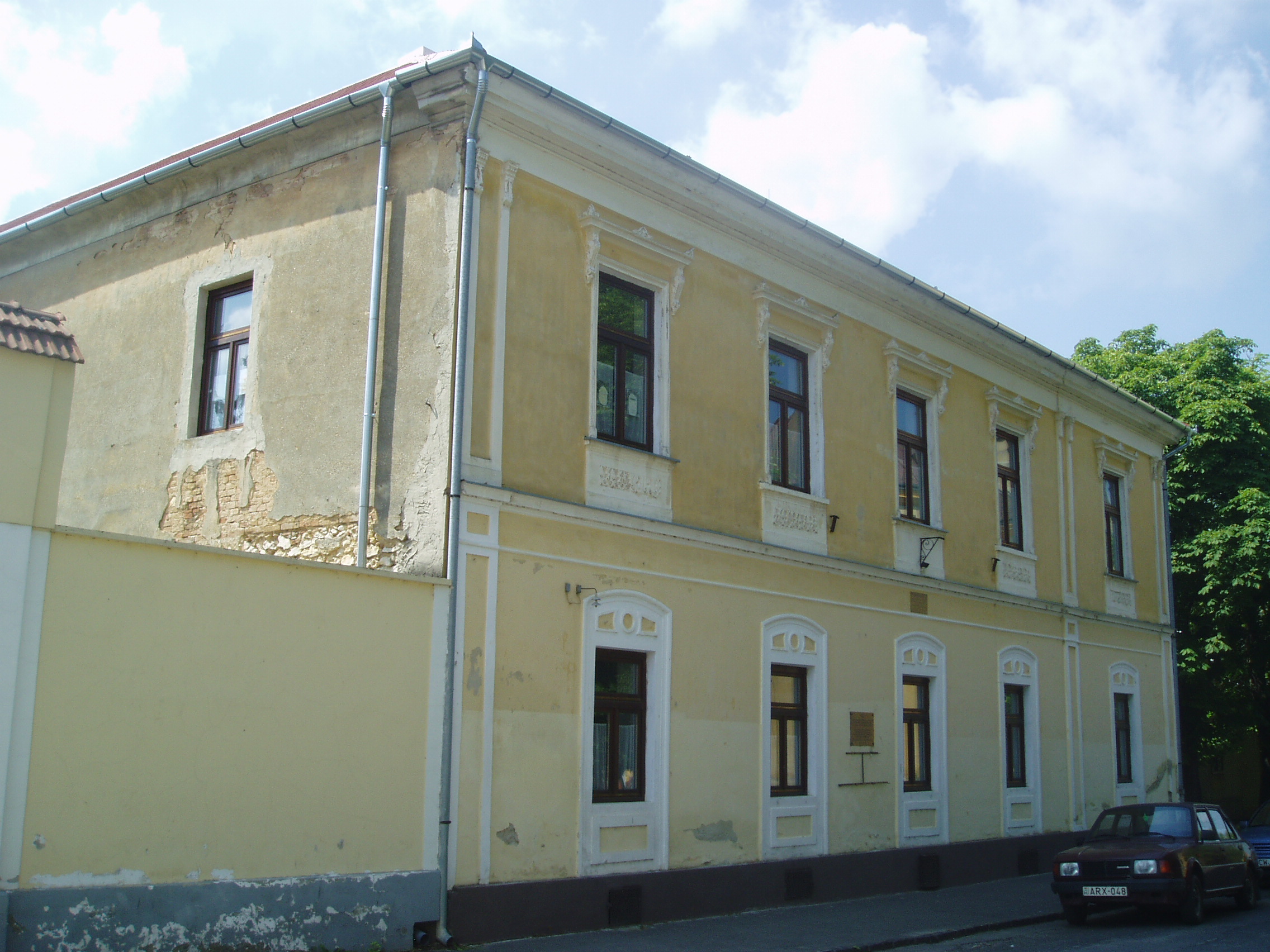 Nyilvános 1428 | 2165 | Sümeg, Ramassetter utca 10. | A Ramasetter utca házai jórészt a XVII. század második felében épültek, bár a legtöbbet később átalakították. A 10. számú épület is barokk stílusú, földszintes ház volt eredetileg, amelyre később emeletet építettek, s homlokzatát eklektikus stílusban átalakították. Az épület homlokzatán olvasható emléktábla szerint ebben a házban élt és halt meg Ramassetter Vince, "Sümeg atyja". Ramassetter Vincének a városban egészalakos szobra (lásd: Sümeg, Kossuth u. 13.) és több emléktáblája is látható, köztük a közelben álló szülőházán is (lásd: Sümeg, Deák F. u. 6.). A város jótevője a helyi köztemetőben nyugszik (lásd: Sümeg, Temető: Ramassetter Vince sírja). A fénykép 2007 júniusában készült. Felh. irod.: Koppány Tibor - Kozák Károly: Sümeg útikalauz. Veszprém, Idegenforgalmi Hivatal, 1965 Veszprém megyei életrajzi lexikon. Veszprém, Veszprém Megyei Önkormányzat Közgyűlése, 1998 www.ekmk.hu/emlekhely/Emlekhelyek.html |