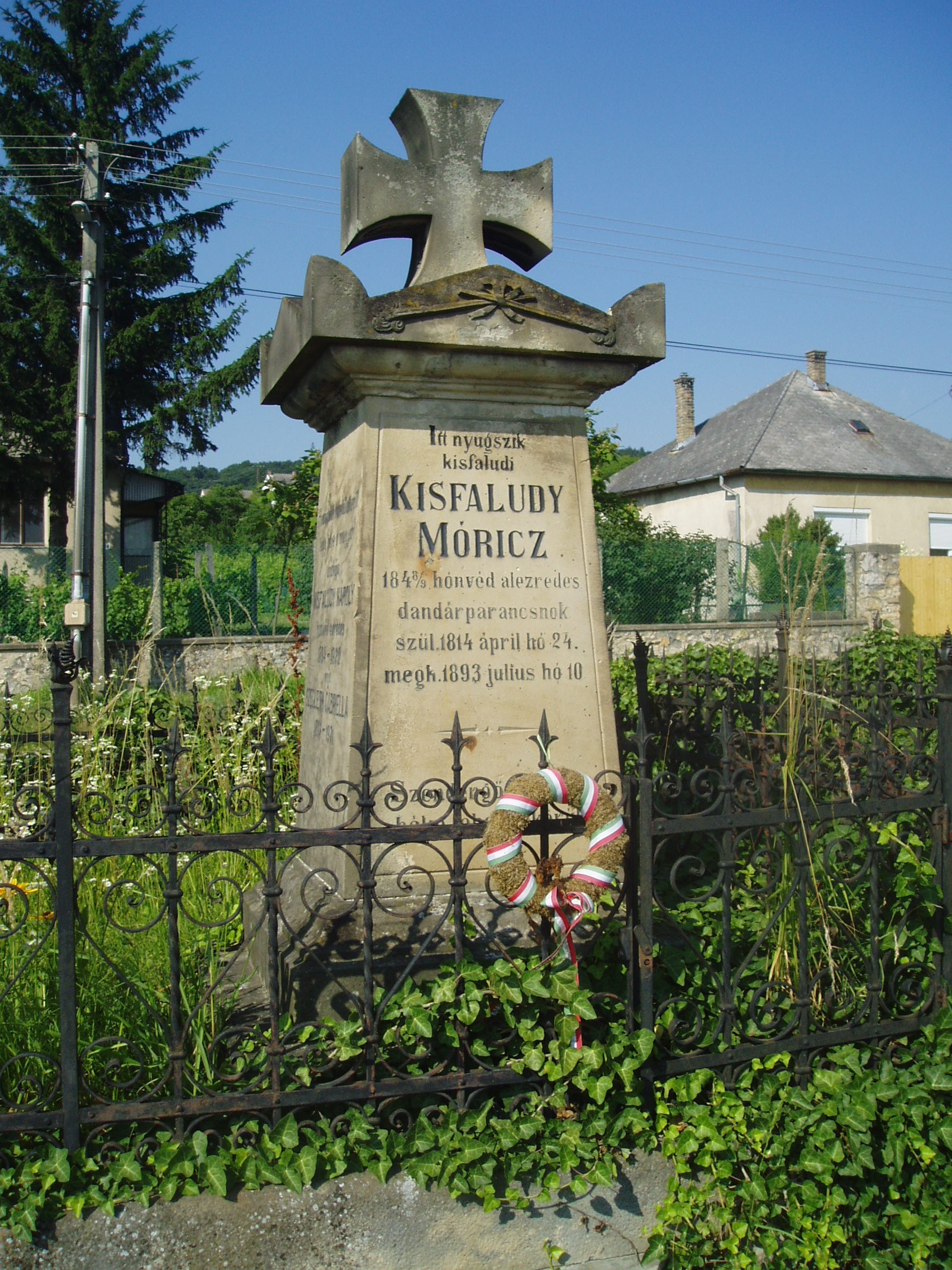 Nyilvános 1461 | 3512 | Sümeg, Temető. Kisfaludy Mór sírja | Sümeg délkeleti határában, a Tapolcára vezető út mellett emelkedő lankás domboldalon találjuk a város köztemetőjét. Helyét még Bíró Márton püspök jelölte ki; jelentősebb számban a XIX. század eleje óta kezdtek ide temetkezni. A temetődomb tetején áll az 1816-ban épített, későbarokk stílusú temetőkápolna. Körülötte a sümegi élet utolsó két évszázada szinte valamennyi híres személyiségének sírja fellelhető. A Tapolcai útra nyíló alsó temetőkapu mellett található Kisfaludy Mór és családja sírkertje. Az empire stílusú sírkő eredetileg Szegedy Róza nyughelyét jelölte. Amikor az 1900-as évek elején egyesítették sírját férjéével, átfaragták sírkövét, s azóta Kisfaludy Mór és családja sírját jelöli. Itt nyugszik Kisfaludy Mór (1814-1893) 1848-as honvéd alezredes, dandárparancsnok, Kisfaludy Sándor unokaöccse. Részt vett az isaszegi, a kápolnai, a pákozdi harcokban, jelen volt Budavár visszafoglalásánál. Aradon halálra ítélték, amit később 16 év várfogságra változtattak. Ismerősei közbenjárására két év múlva kiszabadult, s Sümegre költözött. Véglegesen visszavonult a közélettől, gazdálkodással foglalkozott. Több családtagja is itt van eltemetve. A fénykép 2007 júniusában készült. Felh. irod.: Koppány Tibor - Kozák Károly: Sümeg útikalauz. Veszprém, Idegenforgalmi Hivatal, 1965 Sümegi kalauz. Sümeg, Sümegi Fórum Alapítvány, 1993 Miklósi-Sikes Csaba: Kőbe vésett történelem. A sümegi városi temetők története és sírjelei 1950-ig. Sümeg, Sümegi Fórum Alapítvány, 2002 Veszprém megyei életrajzi lexikon. Veszprém, Veszprém Megyei Önkormányzat Közgyűlése, 1998 |