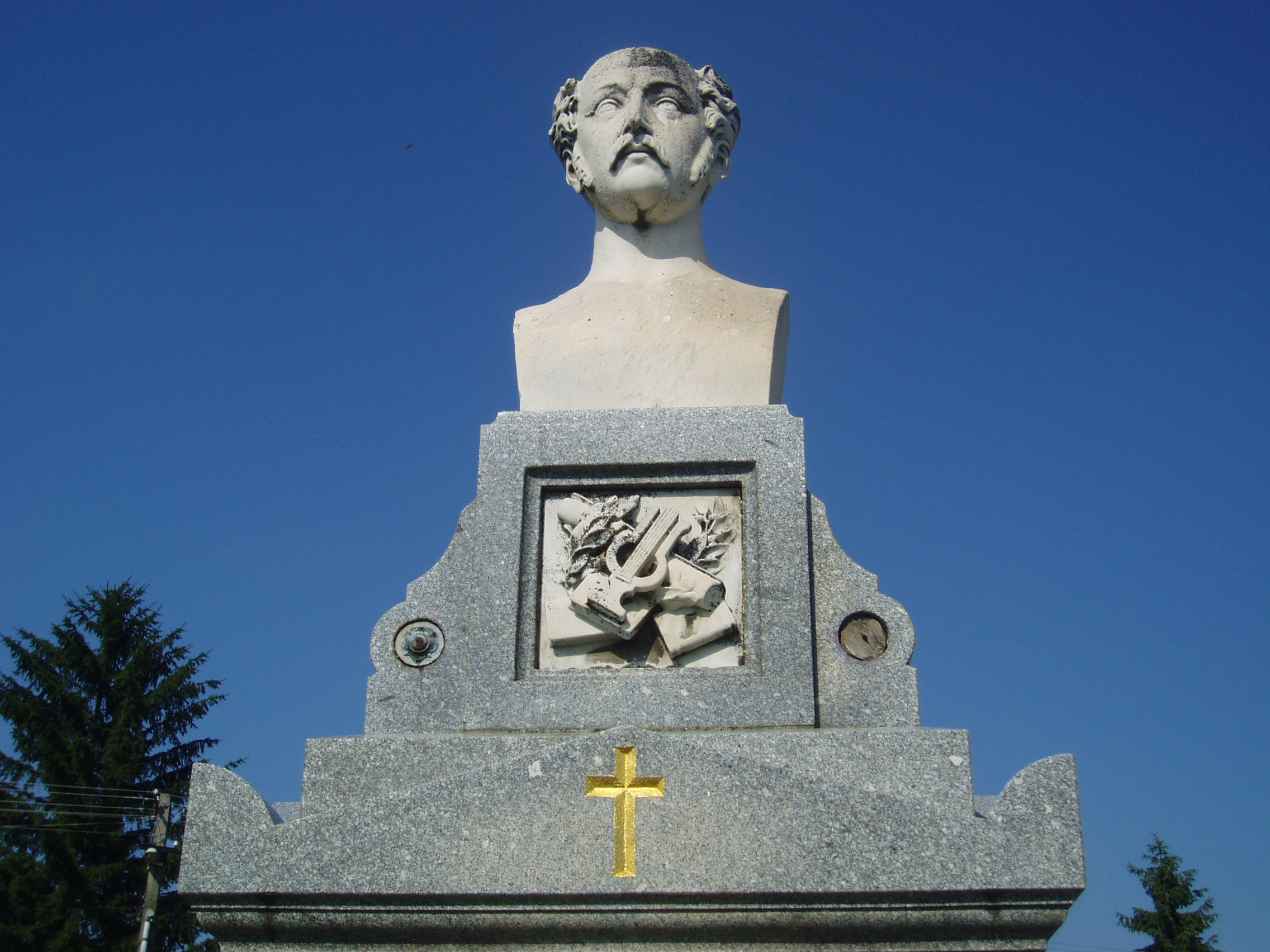 Nyilvános 1506 | 3357 | Sümeg, Temető. Kisfaludy Sándor és Szegedi Róza sírja | Sümeg délkeleti határában, a Tapolcára vezető út mellett emelkedő lankás domboldalon találjuk a város köztemetőjét. Helyét még Bíró Márton püspök jelölte ki; jelentősebb számban a XIX. század eleje óta kezdtek ide temetkezni. A temetődomb tetején áll az 1816-ban épített, későbarokk stílusú temetőkápolna. Körülötte a sümegi élet utolsó két évszázada szinte valamennyi híres személyiségének sírja fellelhető. A temető leglátogatottabb síremléke Kisfaludy Sándor (1772-1844) és felesége, Szegedy Róza (1775-1832) sírja. A korábban elhunyt Szegedy Róza földi maradványait az 1900-as évek elején helyezték át férje sírjába. Akkor már a költő sem eredeti helyén nyugodott, erre a díszsírhelyre 1869-ben hozták át koporsóját. A timpanonos lezárású szürke gránit sírkövet megkoronázó Kisfaludy Sándor-mellszobor Gerenday Antal 1869-ben készített alkotása. A sír háromlépcsős talapzatának középső fokára helyezték Szegedy Róza lépcsőre hulló rózsákkal díszített portrédomborművét, amelyet Istók János készített 1904-ben. A fénykép 2007 júniusában készült. Felh. irod.: Koppány Tibor - Kozák Károly: Sümeg útikalauz. Veszprém, Idegenforgalmi Hivatal, 1965 Sümegi kalauz. Sümeg, Sümegi Fórum Alapítvány, 1993 Miklósi-Sikes Csaba: Kőbe vésett történelem. A sümegi városi temetők története és sírjelei 1950-ig. Sümeg, Sümegi Fórum Alapítvány, 2002 Veszprém megyei életrajzi lexikon. Veszprém, Veszprém Megyei Önkormányzat Közgyűlése, 1998 |