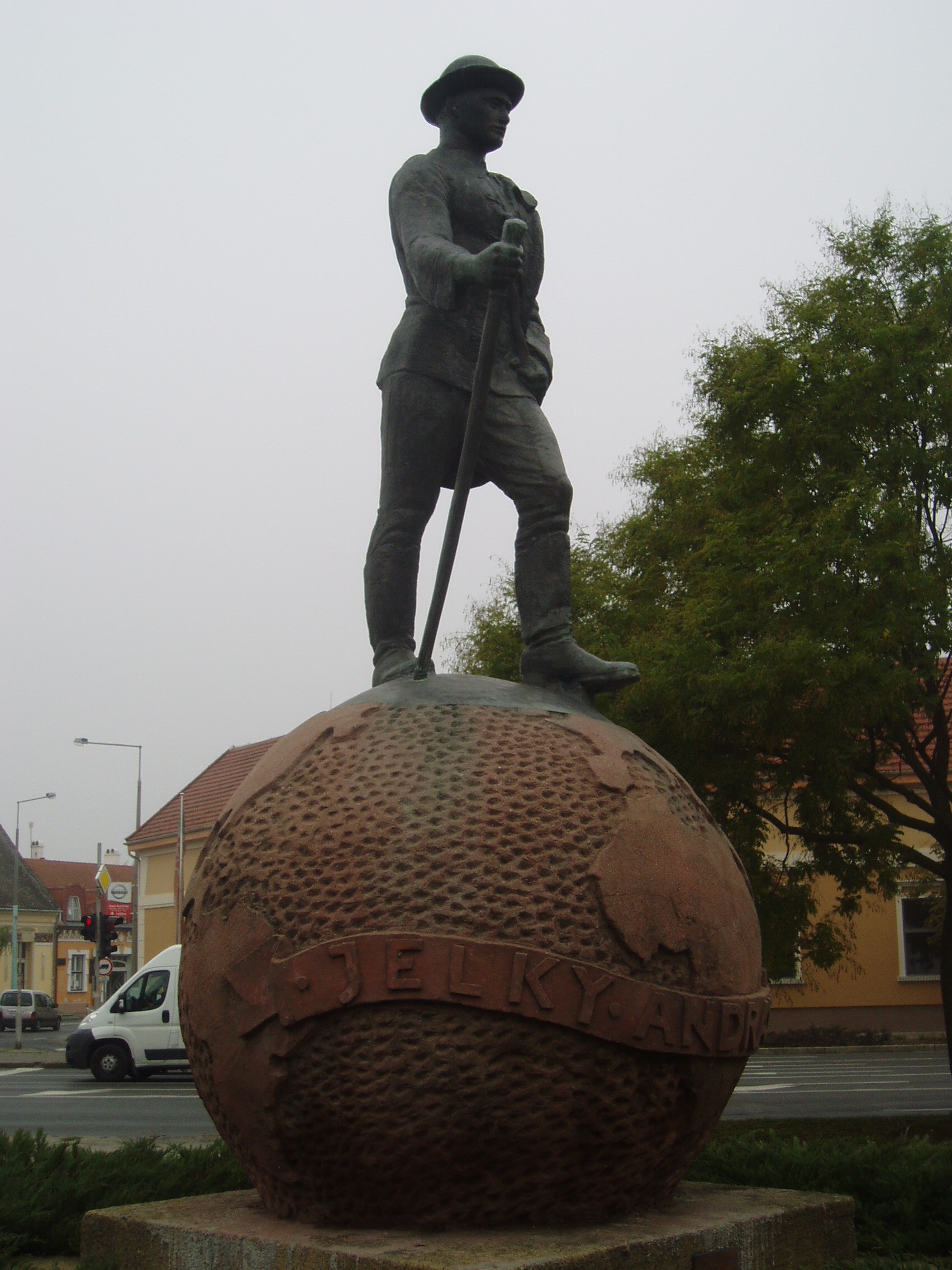 Nyilvános 1451 | 2199 | Baja, Jelky András tér: Jelky András szobra | A város egyik kedves jelképe a bajai születésű, szabólegényből lett világutazó Jelky András földgömbön álló, vándorbotos szoboralakja. A bronzszobor Medgyessy Ferenc, a vasbeton földgömb Miskolczy Ferenc alkotása. Jelky András a Bajai Belvárosi Plébánia anyakönyvi bejegyzése szerint 1738. április 20-án született. Édesapja kiszolgált császári katona volt, aki Baján szabóként dolgozott. Fiát – hasonlóképp annak bátyjához, aki a bécsi császári ruhatárnál szabóskodott – szintén szabónak szánta. 1754. március 13-án kelt vándorútra. Európai kalandozásai közben Nimvegenben erőszakkal besorozták katonának és 1755. október 30-án elindult vele a hajó Holland-Kelet-India felé. Ekkor kezdődtek igazi kalandjai, melyek során megjárta Makaót, Batáviát, Ceylont - ez utóbbi helyen kis híján megették a kannibálok. Sok viszontagság után "haza"került Batáviába, ahol korábban megnősült. Komoly vagyont szerzett, és 1767-ben egy 1400 házból álló ültetvényt vett. 1770-ben a polgári őrség kapitányává nevezték ki, a holland követség titkos tanácsosaként többször járt követségben Japánban és Jáván. Felesége halála utánbús lemondott az állásáról, és 1776. október 25-én Európába utazott. 1777. október 2-án Bécsbe, ahol bátyját még életben találta. Bécsben nagy feltűnést keltett érkezésével, bemutatták Mária Teréziának is. 1778-ban Budán telepedett le. Ismét megnősült, s egy fia született. 53 éves korában tüdővészben hunyt el. Életútját Solymos Ede, a bajai múzeum igazgatója kutatta ki, regényt Hevesi Lajos írt róla. A fénykép 2007 októberében készült. Felh. irod.: Látnivalók Bács-Kiskun megyében. Miskolc, Well-PRess, 2002 Gál Zoltán: Jelky András, a világjáró bajai szabólegény. = Baja Story 2007. nov. 29. |