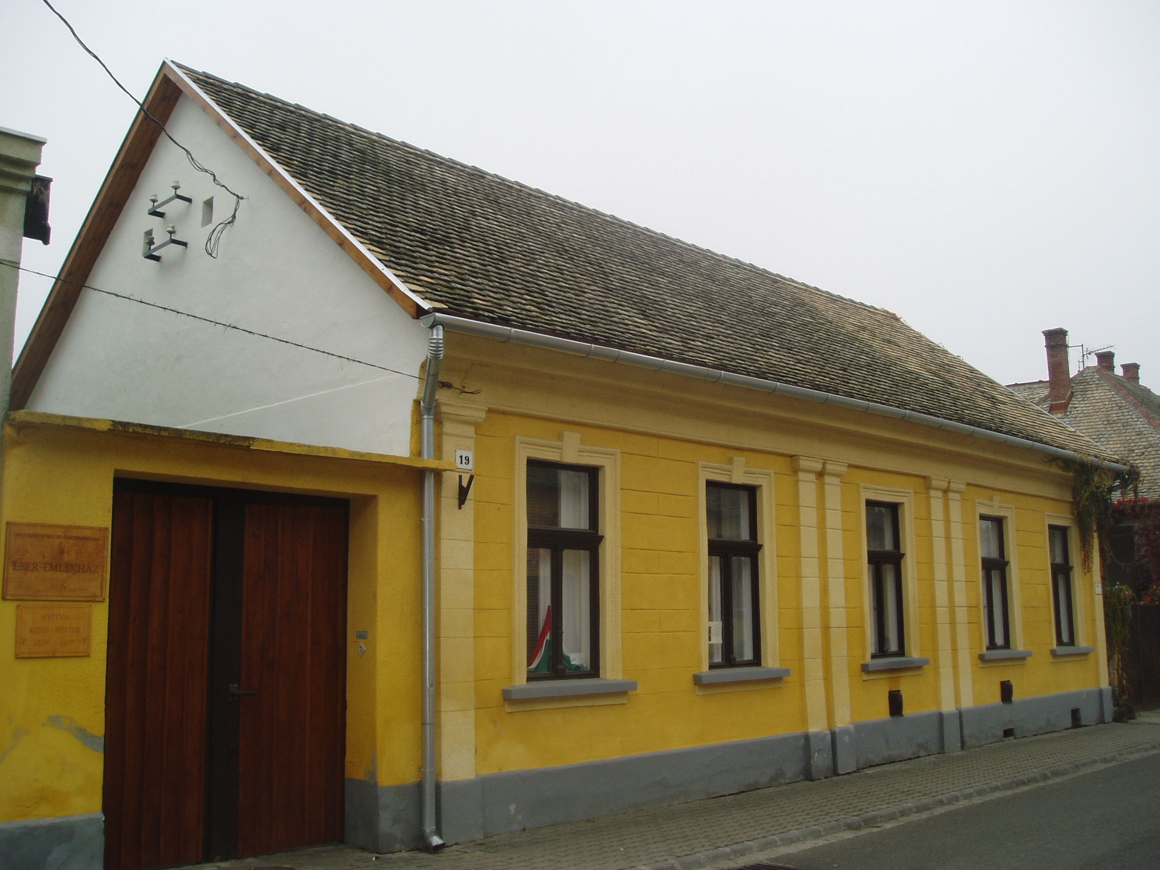 Nyilvános 1406 | 1840 | Baja, Jókai utca 19. Éber Emlékház | Baja keskeny, csendesen kanyargó utcájában áll id. Éber Sándor festőművész egykori otthona, a mai Éber Emlékház. Id. Éber Sándor (1878–1947) Székely Bertalan növendéke volt a Mintarajziskolában. A Tanítóképző Intézet tanáraként érkezett Bajára 1902-ben, ahol két évtizeden keresztül tanított. Művészként elsősorban a monumentális festészet vonzotta: élete során 22 templom, illetve iskola falát díszítette kissé szecessziós, néhol magyaros elemekkel díszített seccóival, freskóival. Harmonikus családi életet élt Baján megismert feleségével, s hét gyermeke született. Közülük leánya, Éber Anna (1905) és fia, Éber Sándor (1909–1985) lett neves képzőművész. Bajai lakásuk valóságos múzeum volt, benne saját képekkel és a környéken gyűjtött népművészeti tárgyakkal. A hangulatos házat festők, írók, esztéták is látogatták, s a műterem a helyi művészeti élet centruma és tanúja lett. Ma nyilvános múzeumként látogatható, miután ifj. Éber Sándor több évtizeden át hűségesen gondozta és bővítette a családi hagyatékot. A fénykép 2007 októberében készült. Felh. irod.: Látnivalók Bács-Kiskun megyében. Miskolc, Well-PRess, 2002 Kovács Zita: Az Éber-emlékház. Baja, Türr István Múzeum, 1999 |