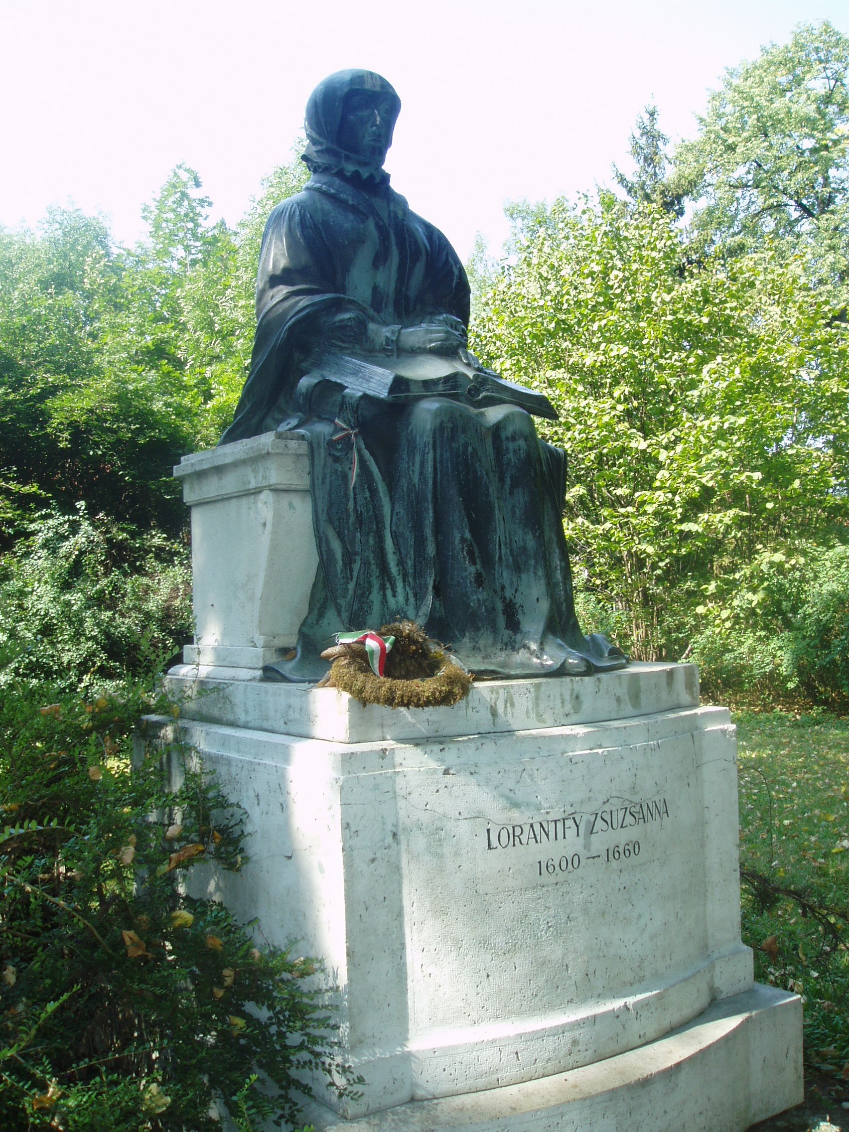 Nyilvános 1632 | 5818 | Sárospatak, Iskolakert: Lorántffy Zsuzsanna szobra | A Református Kollégium (lásd: Sárospatak, Rákóczi u. 1.) bejáratával szemben találjuk az Iskolakertnek nevezett parkot. Az 1980-as években természetvédelmi területté nyilvánított Iskolakert sajátos nemzeti érték, mely egyedülálló az országban. Sétányai mentén Patakhoz kötődő jeles személyiségek szobrai állnak. Lorántffy Zsuzsanna (1600-1660) egész alakos ülő bronzszobra az Iskolakert főútja mentén, a Kossuth kollégiumhoz vezető út tengelyében található. Horváth Géza szobrászművész alkotását 1931-ben leplezték le. Lorántffy Zsuzsanna, I. Rákóczi György felesége sokat tett a kollégiumi oktatás fellendítéséért. Férje 1648-ban bekövetkezett halála után is a városban maradt. Meghívására érkezett a pataki kollégiumba tanárként 1650-ben Comenius. A fejedelemasszony nyomdát is alapított 1651-ben. Patakon hunyt el 1660. április 18-án. A fénykép 2007 augusztusában készült. Felh. irod.: Látnivalók Borsod-Abaúj-Zemplén megyében. Miskolc, Well-PRess, 1995 www.sarospatak.hu/nevezetessegek Erős Zoltán: Magyar irodalmi helynevek A-tól Z-ig. Bp. Kis-Lant Kiadó, 1995 |