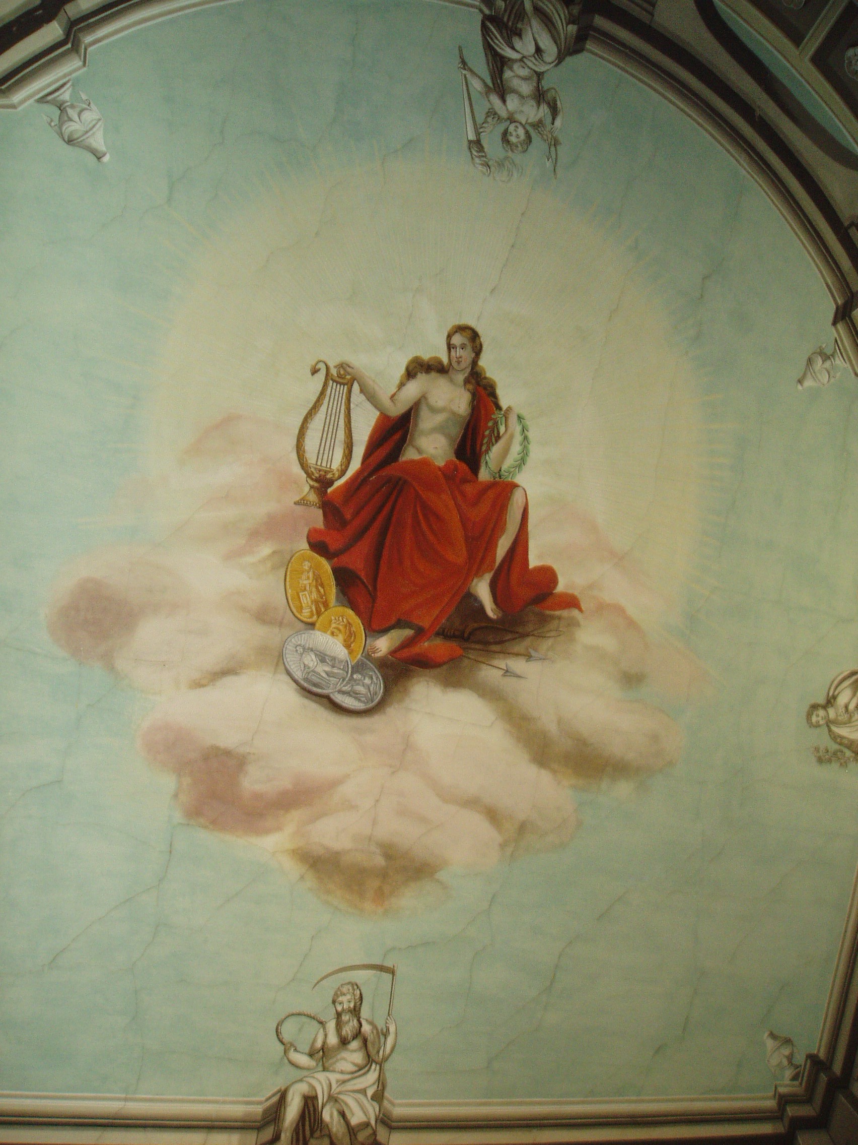 Nyilvános 1410 | 1859 | Sárospatak, Rákóczi utca 1. A Református Kollégium Könyvtára | A Kollégium főépületének emeletén található az intézmény nevezetes könyvtára. A terem belső kiképzése 1834-re készült el egy "Pollack" aláírású terv alapján, ezért a magyar klasszicizmus nagy mesterének, Pollack Mihálynak tulajdonítják a pompás interieurt. Az elnyújtott, két emeletet egybefoglaló termet fából épült dór oszlopsor veszi körül, amelynek gerendázata galériát tart. A falak mellett az oszlopsoron és a galérián belül XIX. századi könyvállványok hordozzák a nagy értékű könyvgyűjteményt. A terem padlózata csillagmintás berakású táblás parketta. A múzsát ábrázoló mennyezetfreskó Lintzbauer József kassai festő alkotása. A fénykép 2007 augusztusában készült. Felh. irod.: Détsy Mihály: Sárospatak. Bp. Corvina, 1974 www.gradatio.hu/nagykonyvtar |