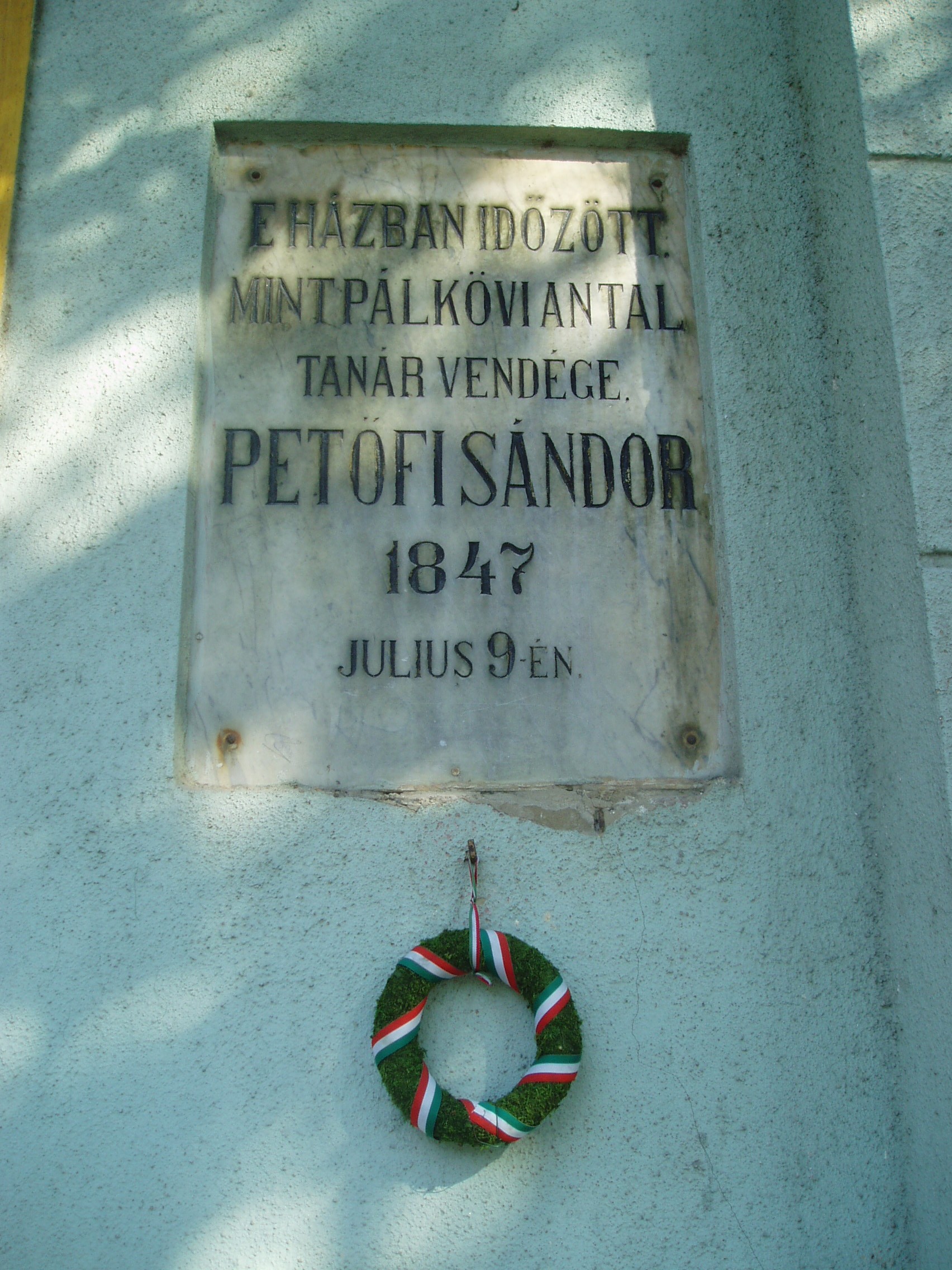 Nyilvános 1390 | 1811 | Sárospatak, Rákóczi utca 17. | Itt lakott Pálkövi Antal kollégiumi tanár, akinek lakásán vendégeskedett 1847. július 9-én Petőfi Sándor. Petőfi erdélyi útja során látogatta meg Sárospatakot, Miskolcról jött a Hegyalján keresztül. Délután érkezett a városba s Pálkövi tanárnál szállt meg. Másnap Sátoraljaújhelyre ment meglátogatni barátját, Kazinczy Gábort, Kazinczy Ferenc unokaöccsét (lásd: Sátoraljaújhely, Dózsa Gy. u. 11.), útba ejtve Széphalmot (lásd: Széphalom, Kazinczy Mauzóleum) is. A költő Sárospatakról keltezte XI. Úti levelét. A fénykép 2007 augusztusában készült. Felh. irod.: Látnivalók Borsod-Abaúj-Zemplén megyében. Miskolc, Well-PRess, 1995 Erős Zoltán: Magyar irodalmi helynevek A-tól Z-ig. Bp. Kis-Lant Kiadó, 1995 |