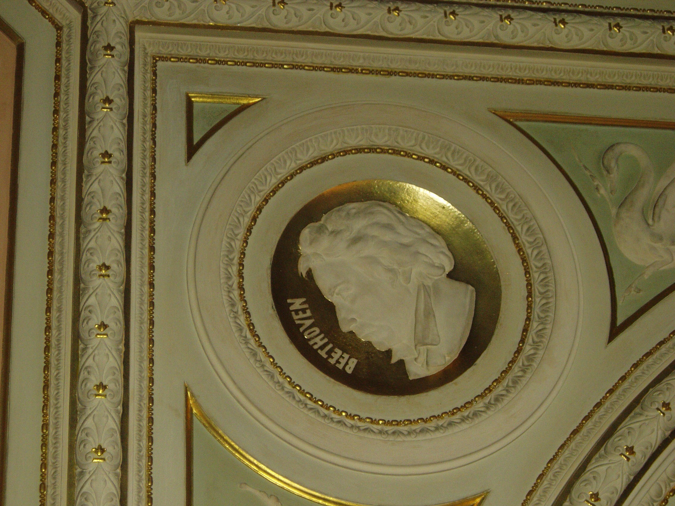 Nyilvános 1470 | 2002 | Budapest, VI. Andrássy út 3. | Az eklektikus bérpalota 1884-86-ban épült Czigler Győző tervei alapján. Építtetője Saxlehner Aladár kereskedő (a Hunyadi János keserűvizet ő terjesztette el Magyarországon). Felesége, Saxlehner Emma operaénekesnő volt - a Nemzeti Színház, majd az Operaház alt énekesnője -, akinek monogramja, illetve festett és szobor portréi több helyen is láthatók az épületben, illetve első emeleti gyönyörű lakásukban. A dúsgazdag üzletember a legjobb mesterekkel dolgoztatott. Bérháza körülbelül egyidőben épült az Operaházzal, amelynek freskóit Lotz Károly festette, s Saxlehner - vagy énekesnő felesége - saját palotájának belső festészeti díszítésére őt kérte fel. Máig épségben láthatók Lotz freskói nemcsak a lakásban, hanem a lépcsőházban is (a látogatónak érdemes felmennie a második emeletig!). A festett üvegablakok Róth Miska műhelyéből (lásd: Budapest VI, Nefelejcs u. 26.) kerültek ki. Saxlehnerék lakásában ma is láthatók az eredeti gyönyörű kandallók, falburkolatok, csillárok. A ház asszonya operaénekesnő lévén lakásukban zeneterem is volt, amelynek mennyezetén megörökített nagy zeneszerzők portréit ma is megtekintheti a látogató. Ebben az egykori nagypolgári lakásban ma a Postamúzeum működik. A kiállítás rendkívül harmonikusan illeszkedik a fényűző lakásbelsőhöz. A Postamúzeumot 1955-ben alapították, 1972-ben költözött a Saxlehner-palotába. A múzeum a postaszolgálat ipar- és technikatörténeti tárgyait, terveit, dokumentumait őrzi. Műtárgygyűjteményét adat-, fotó-, film-, hang- és könyvtár egészíti ki. Állandó kiállításán a XIX-XX. század fordulójának magyar postáját mutatják be, de rendszeresen tartanak időszaki kiállításokat is. A képen a zeneterem mennyezetén Beethoven arcképe látható. A fénykép 2007 januárjában készült. Felh. irod.: Schäffer Erzsébet: Mesék egy palotából. = S. E.: Hol nem volt. Életek, mesék, pillanatok. Bp. Sanoma Budapest Kiadói Rt., 2004. /Nők Lapja Műhely./ www.postamuzeum.hu www.museum.hu/budapest/postamuzeum/ |