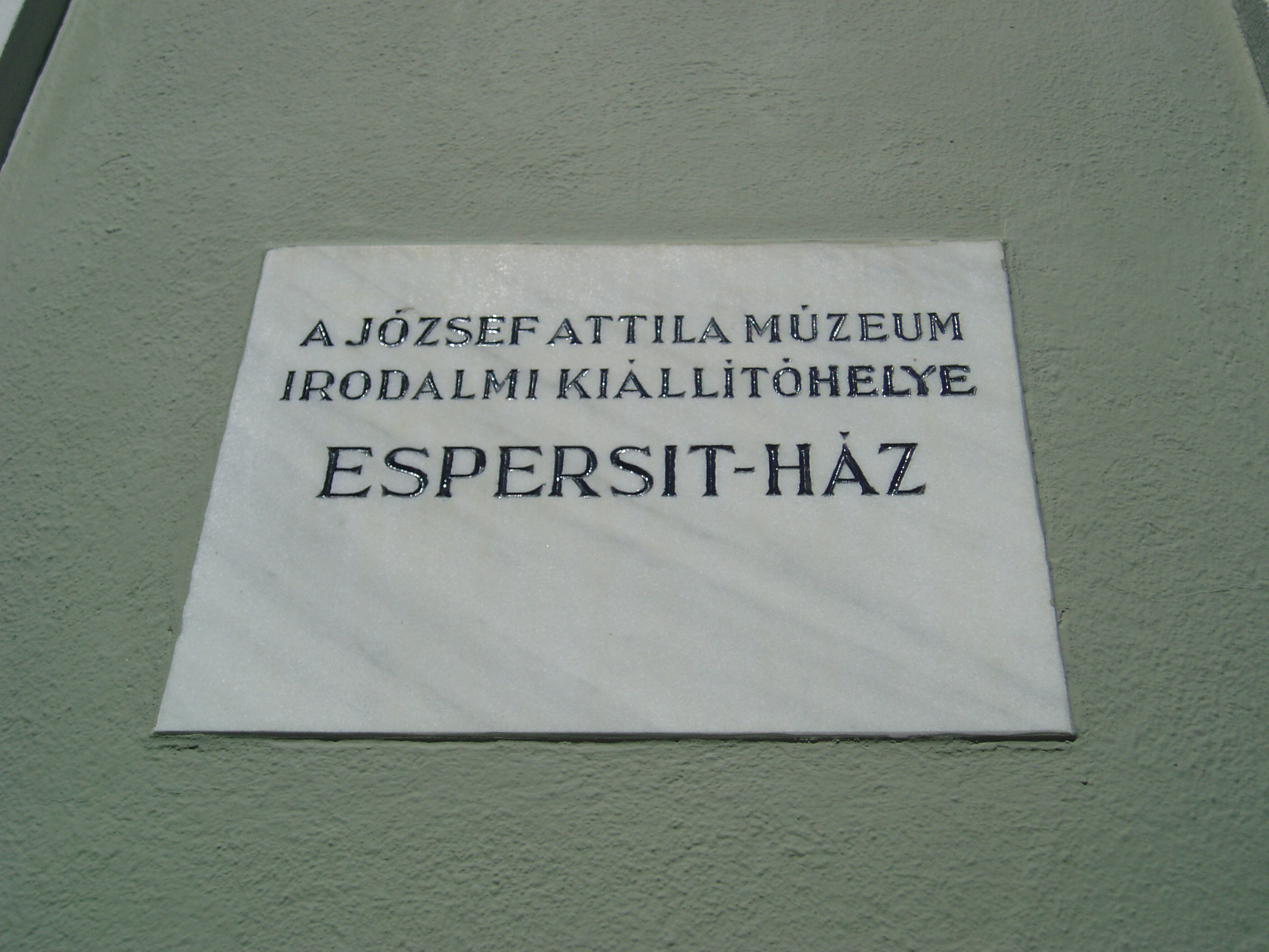 Nyilvános 1390 | 1751 | Makó, Kazinczy utca 6. Espersit-ház | Az épület, Dr. Espersit János (1879-1931) egykori háza 1979 óta Makó irodalmi emlékmúzeuma. A jónevű ügyvéd, függetlenségi, majd köztársaságpárti politikus, polgári radikális lapszerkesztő írók, költők, művészek jeles mecénása is volt. Otthonában makói tanár korában gyakori vendég volt Juhász Gyula, aki így írt: "A Músa áldja ezt a szép lakot Hol napjaim derűs örömbe folynak." A ház vendége, majd hónapokig lakója volt a fiatal József Attila. 1920 októberében, 15 éves korában érkezett Makóra, hogy tanulmányait a főgimnáziumban (lásd: Makó, Csanád vezér tér 6.) folytassa. Makói verseiből állt össze első kötete, a Szépség koldusa. A magyar irodalom harmadik jelese, aki e házban megfordult, a magát "tiszteletbeli makai"-nak nevező Móra Ferenc, akinek Georgikon című kötete ebben a házban született. A múzeum első szobája első a "Hősi bajnok" címet kapta. A látogatók megismerhetik azt a szellemi-kulturális légkört és baráti társaságot, amely József Attilát, Juhász Gyulát és Móra Ferencet, Rudnay Gyulát, Vén Emilt is befogadta. A második szoba, a "Meghitt kultúrbarlang" íróasztalán, foteljében alkotott Juhász Gyula, József Attila. A harmadik szoba a "Szent csöndben" címet kapta, itt ismerkedhetnek meg a látogatók Juhász Gyula makói éveivel, verseivel. A negyedik szoba József Attila makói gimnáziumban töltött diákéveit és makói múzsáit mutatja be "Új és paraszti füttyként indulok" címmel. (Sajnos, a múzeumbelsőben nem lehetett fényképezni, pedig végignézése egyik legnagyobb múzeumi élményem volt! - K.K.) A fénykép 2007 júliusában készült. Felh. irod.: Barangolások Csongrád megyében. Miskolc, Well-PRess, 1997 www.mfm.u-szeged.hu/mako05.html |