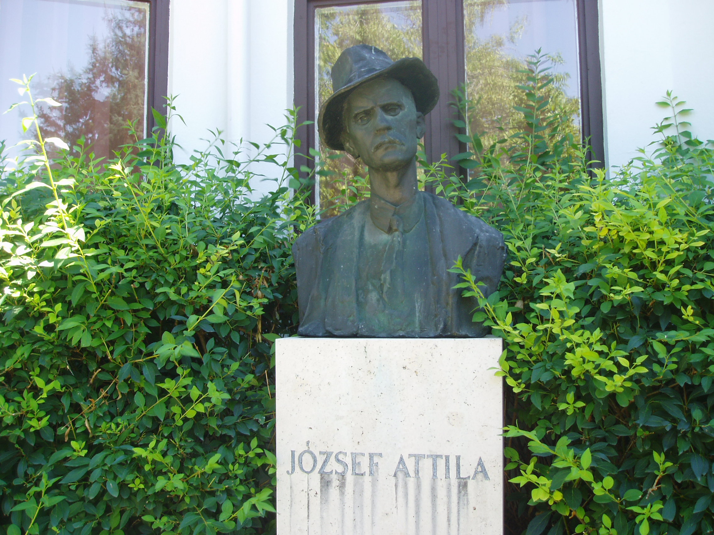 Nyilvános 1360 | 1811 | Makó, Kazinczy utca 6. Espersit-ház | Az épület, Dr. Espersit János (1879-1931) egykori háza 1979 óta Makó irodalmi emlékmúzeuma. A jónevű ügyvéd, függetlenségi, majd köztársaságpárti politikus, polgári radikális lapszerkesztő írók, költők, művészek jeles mecénása is volt. A ház vendége, majd hónapokig lakója volt a fiatal József Attila. 1920 októberében, 15 éves korában érkezett Makóra, hogy tanulmányait a főgimnáziumban (lásd: Makó, Csanád vezér tér 6.) folytassa. Makói verseiből állt össze első kötete, a Szépség koldusa. Az udvar hangulatához hozzátartozik Varga Imre kalapos József Attila szobra. A művész szinte jelenlévőként, szellemi izzásban varázsolja elénk a költőt. A fénykép 2007 júliusában készült. Felh. irod.: Barangolások Csongrád megyében. Miskolc, Well-PRess, 1997 www.mfm.u-szeged.hu/mako05.html www.szentgellertborhaz.hu/latnivalok.html |