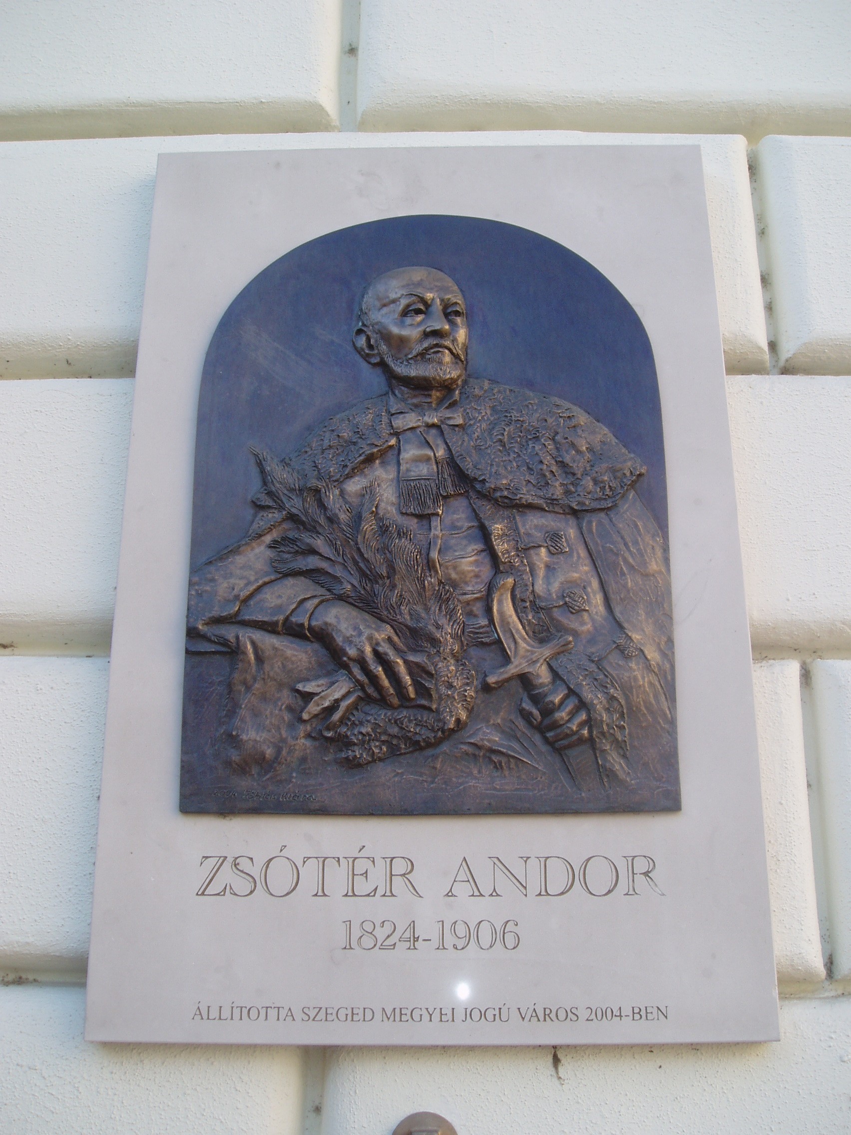 Nyilvános 1412 | 1740 | Szeged, Klauzál tér 1. Az új Zsótér-ház | A Klauzál tér, amelyet egységet sugalló egy- és kétemeletes, városképi szempontból is jelentős épületek határolnak, hajdan a Széchenyi térből vált ki. Bár négy felől is utcák bontják meg, mégis zárt hatást kelt. A Széchenyi és a Klauzál teret kettéosztó eklektikus stílusú műemlék épületet Zsótér Andor építtette 1873-ban szállodának. Földszintjén van a Virág cukrászda, a turisták és városlakók egyik kedvenc helye. Előde, Allemann János és Hózig Péter cukrászdája a városi palota felépülése után hamarosan ideköltözött. Az üzlet 1884-ben Árvay Sándor és fia tulajdonába került. A "szegedi Gerbeaud"-nak nevezett cukrászda hírnevét 1922-től a Virágh-testvérek öregbítették. Virágh Béla jóvoltából olykor ingyen reggelihez jutott itt az egyetemista József Attila. Az építtető Zsótér Andor (1824-1906) jeles és gazdag kereskedőcsalád sarja volt (részletesebben lásd: Szeged, Széchenyi tér 9.). Vezető szerepet játszott a reformmozgalomban, s a szabadságharcban honvéd főhadnagyként harcolt. Szeged ismert közéleti személyisége mecénása volt íróknak, művészeknek, segítője a rászorultaknak. Pártfogolta például Vastagh György szobrászt és Dankó Pistát. A Nagy Árvíz idején közel háromezer embernek adott menedéket házában, segítette Szeged város újjáépítését. Domborműves emléktábláját Tóbiás Klára készítette. A nagy árvíz előtt az épületben a pénzügyigazgatóság és az adóhivatal működött, 1879 és 1883 között pedig itt tevékenykedett a várost újjáépítését irányító, Tisza Lajos vezetésével működött királyi biztosság. A fénykép 2007 júliusában készült. Felh. irod.: Péter László: Szeged. Bp. Panoráma, 1981 Zsótér Andor dombormű kihelyezése. = www.szegedvaros.hu |