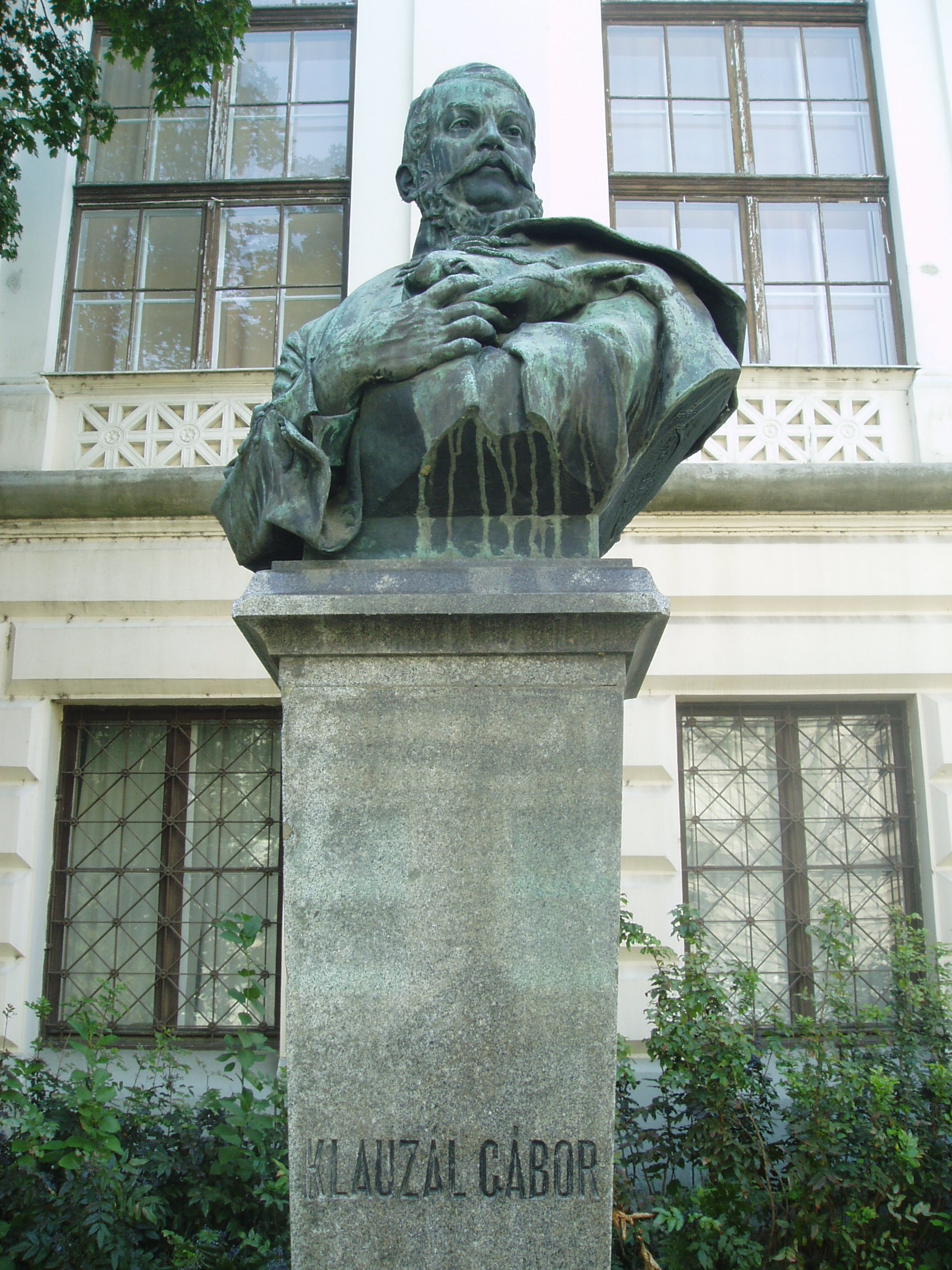 Nyilvános 1435 | 2700 | Szeged, Roosevelt tér: Klauzál Gábor mellszobra | A Közművelődési palota előtt 1906-ban helyezték el Klauzál Gábor mellszobrát, ifj. Vastagh György alkotását. Klauzál Gábor Pesten végzett jogot, s a hagyomány szerint amikor Imre bátyja hívására állást keresni jött Szegedre, kendőbe kötve, botja végén hozta minden vagyonát. Egy bálon hódította meg a szép Prezetska Máriát, egy jómódú gyógyszerész lányát. Bátyja és apósa vitte keresztül, hogy a jó képességű fiatal ügyvédet Csongrád megye 1828-ban első aljegyzőnek és fizetéses táblabírónak nevezte ki. Szeged 1832-ben követévé választotta. 1847-ben meghalt a felesége, így apósa házát ő örökölte. A szabadságharc bukása után kistétényi birtokán gazdálkodott. Az 1861. és 1865. évi országgyűlésen Szeged képviselője volt a Deák-párt programjával. Szegeden hunyt el, sírja a Belvárosi temetőben van (lásd: Szeged, Fonógyári út). Egykori lakóházának helyét emléktáblával jelölték meg (lásd: Szeged, Klauzál tér 8.). A fénykép 2007 júliusában készült. |