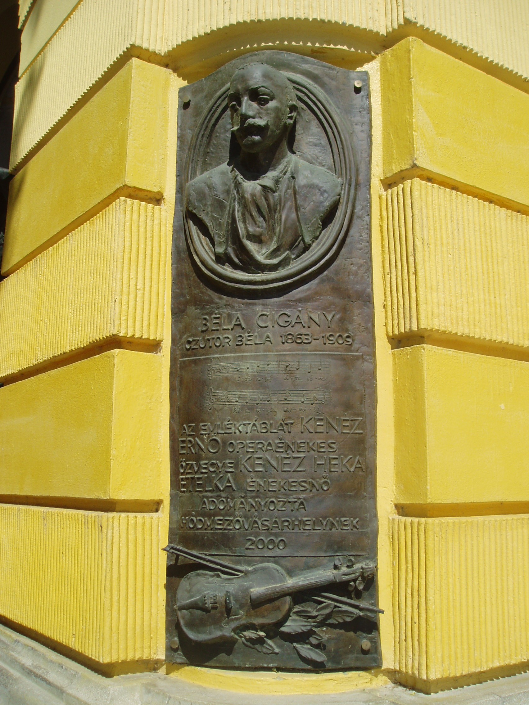 Nyilvános 1812 | 3635 | Hódmezővásárhely, Kossuth tér 3. | A Fekete Sas Szállodát a XX. század elején emelték eklektikus–neobarokk stílusban (1905-ben nyitották meg). A város fő terének egyik meghatározó épületét Pártos Gyula tervezte. Benne található a megye legimpozánsabb díszterme. A mai épület helyén már a XVIII. század elején a később „öreg” Sas-nak nevezett földszintes, majd 1830-ban emeletesre bővített kocsma és vendégfogadó állt. A XIX. század első felében itt tartották előadásaikat a városban vendégszereplő színtársulatok. 1827. júniusában Kilényi Dávid társulatának tagjaként fellépett itt Déryné Széppataki Róza is. Szintén még az öreg Sasban muzsikált a XIX. század utolsó éveiben 12 tagú bandája élén Czutor Béla (1863—1909). "Béla cigány" a régi Vásárhely zenei életének jellegzetes figurája volt. Muzsikus cigány családba született őstehetség, aki ugyan csak három osztályt járt, de divatos üdülőhelyeken, Tátrafüreden, a Margitszigeten, Herkulesfürdőn, Brassóban lépett fel. Dankó Pista dalainak egyik legavatottabb tolmácsolója volt. Dankó — Pósa Lajos versére — nótát is írt zenéjének kiváló interpretálójáról: "Vásárhelyi sétatéren Béla cigány muzsikál… " A megénekelt sétatér híres fasorának eleje a mai épület keleti oldalánál ma is látható. A ma rendezvényházként működő, gyönyörűen felújított épület fasor felőli sarkán márványtábla őrzi Béla cigány emlékét. A fénykép 2007 júliusában készült. Felh. irod.: Barangolások Csongrád megyében. Miskolc, Well-PRess, 1997 /Vendégváró/ Arató László - Batyi Zoltán: Hódmezővásárhely az alföldi művészváros. Hódmezővásárhely, 2004 Kőszegfalvi Ferenc: Hódmezővásárhelyi évfordulók. = Honismeret 1983. 4. |