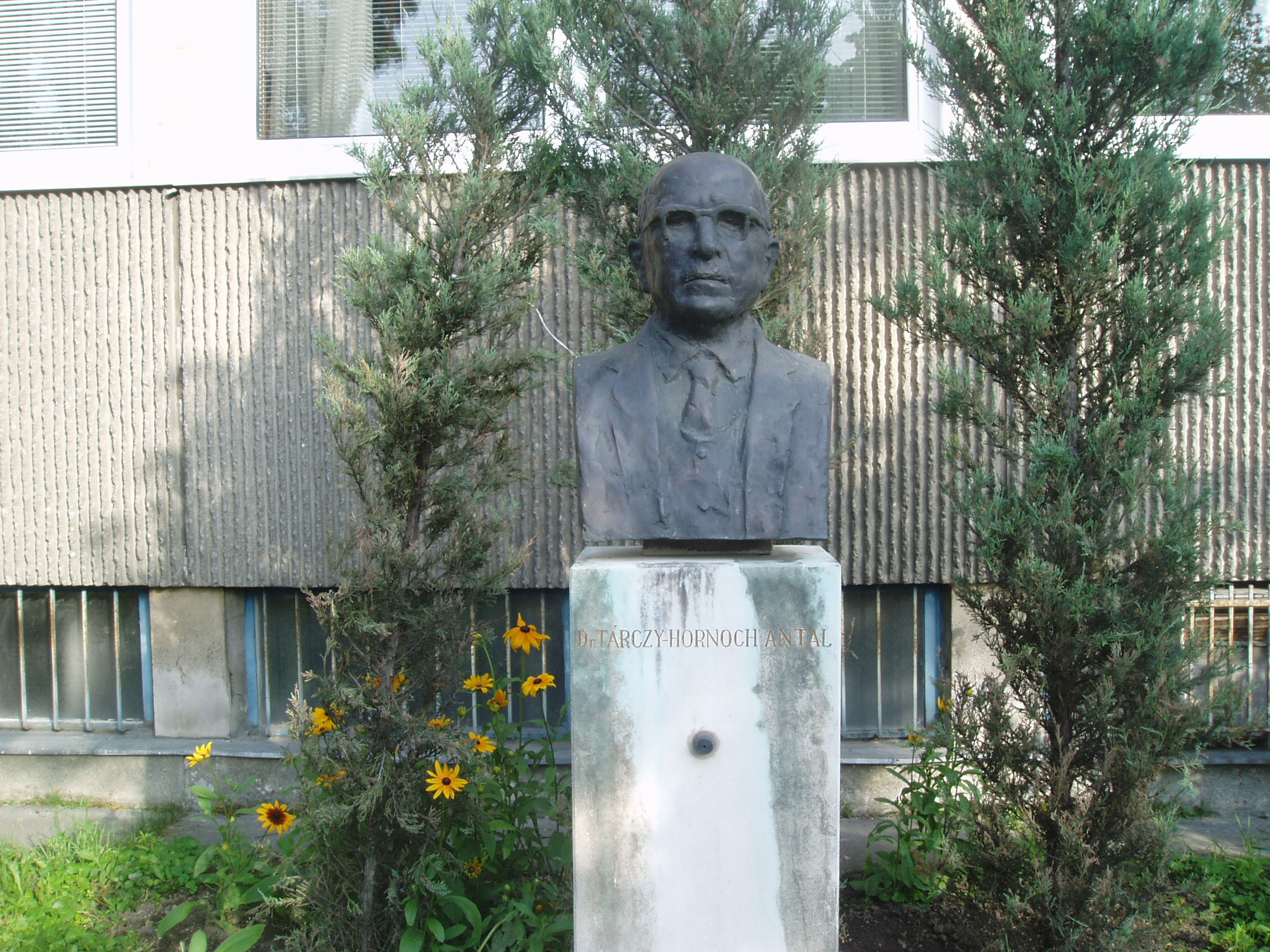 Nyilvános 1452 | 2070 | Sopron, Csatkai Endre utca 6-8. | A modern épületben a Magyar Tudományos Akadémia Geodéziai és Geofizikai Kutatóintézete működik. Az itt dolgozó mintegy 35 kutató geodéziai és geofizikai alapkutatásokban vesz részt. Homlokzatán 1990-ben avatták fel dr. Tárczy Hornoch Antal (1900-1986) emléktábláját. A bányamérnök, egyetemi tanár, akadémikus a magyar bányamérési, földmérési és geofizikai tudományok és hagyományok elhivatott hirdetője és oktatója volt. Kezdeményezésére indult meg Sopronban 1949-ben az önálló földmérőmérnök, 1951-ben pedig a geofizikus-mérnök képzés. Mellszobor is őrzi emlékét, alkotója Varga Éva. A fénykép 2008 júniusában készült. Felh. irod.: http://www.ggki.hu |