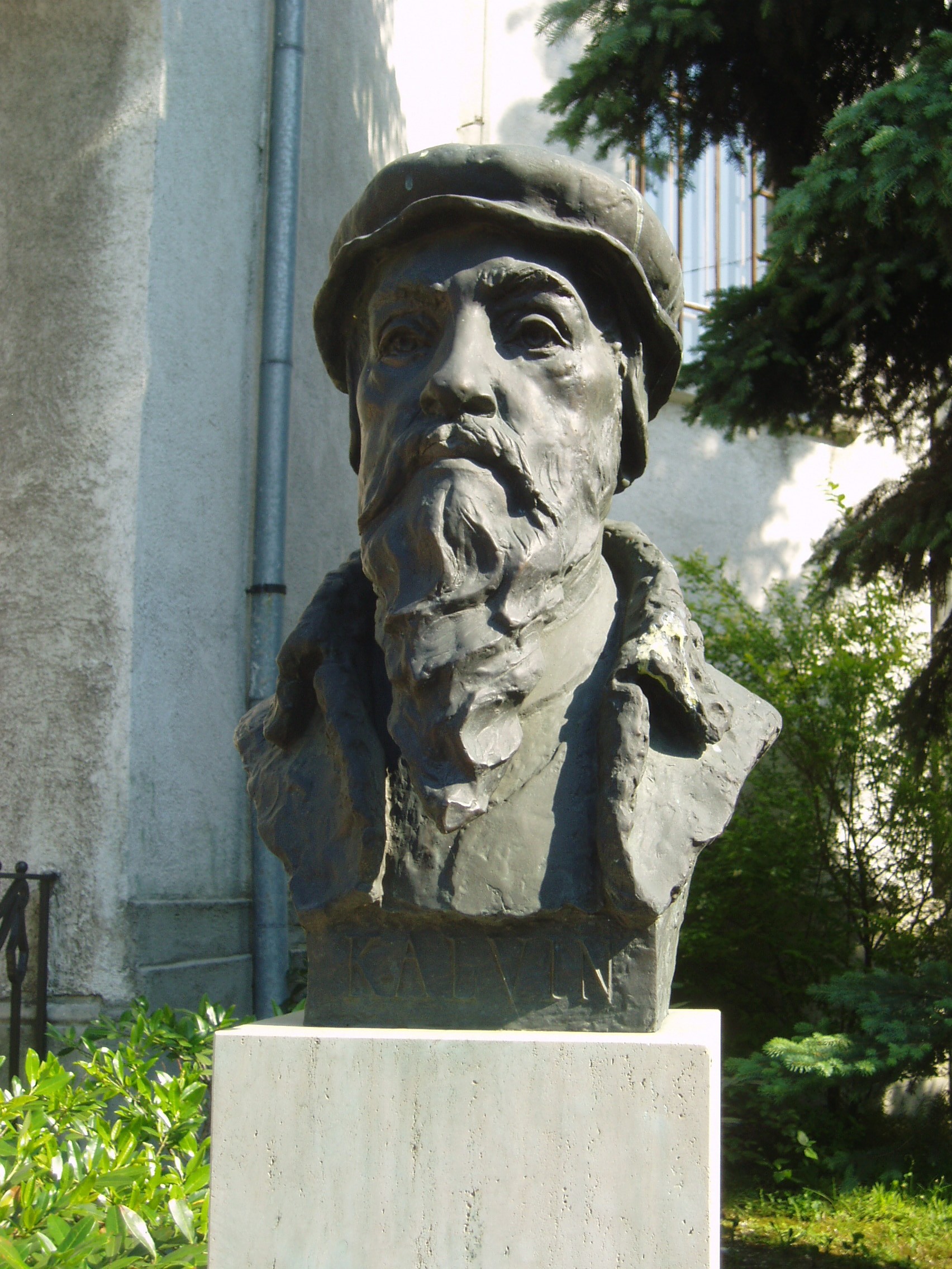 Sopron, Deák tér 02. Ref.templom, Kálvin mellszobor.jpg