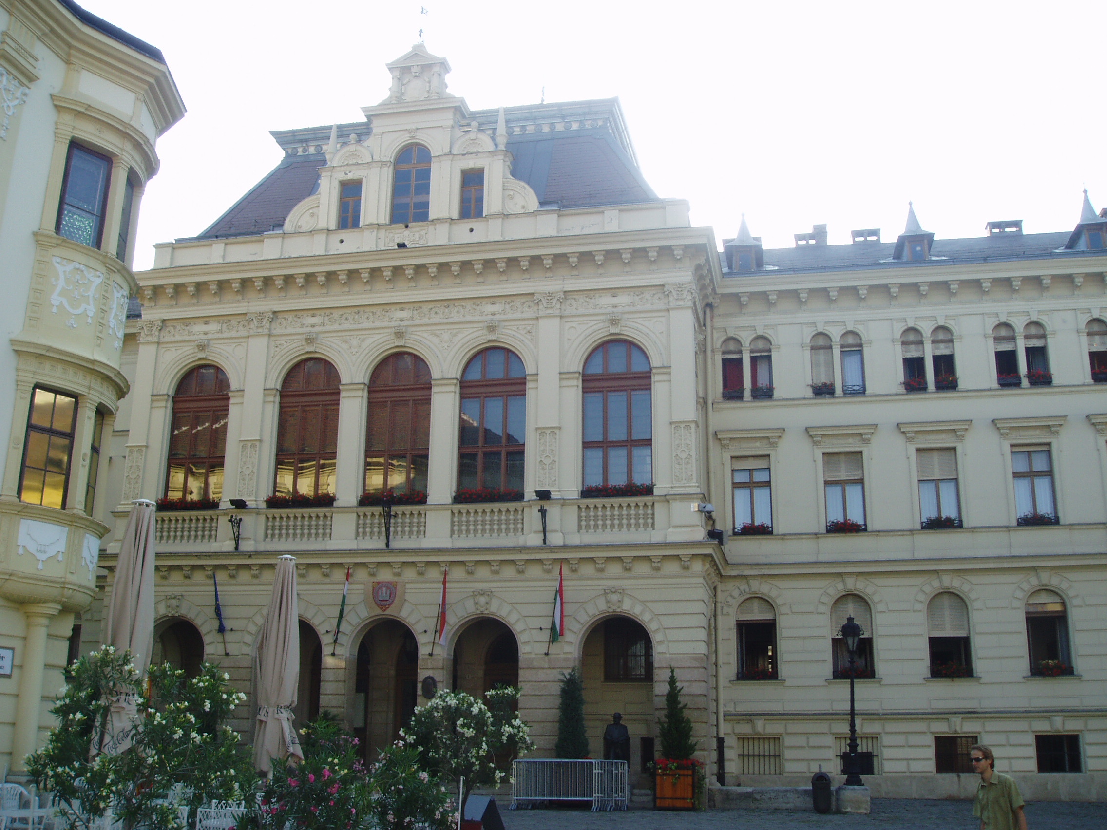 Nyilvános 1383 | 1744 | Sopron, Fő tér 1. Városháza | 1497-től állt ezen a helyen Sopron első számú középülete. Ekkor vásárolta meg és alakíttatta át a város az akkori régi házat. Itt működött a sokoldalú Lackner Kristóf polgármester, aki jeles művészként az épületet kívül és belül festményekkel, feliratokkal díszítette. A mai, eklektikus stílusú városháza az 1890-es évek első felében épült a régi, rossz állapotú középület helyére. Tervezői Hintraeger Mór és fia voltak. A kép 2008 júniusában készült. Felh. irod.: Czellár Katalin: Sopron. 3. jav. kiad. Bp. Panoráma, 2000 |