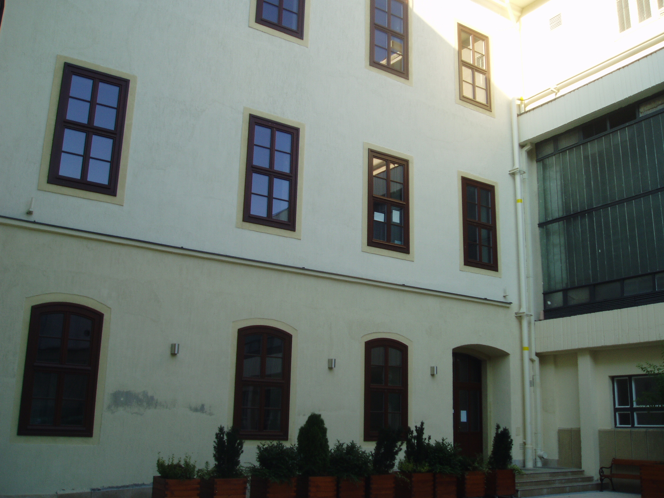 Nyilvános 1428 | 1975 | Sopron, Liszt Ferenc utca 1. | A Széchenyi István Gimnázium eredetileg reáliskola volt, amelyet 1850-ben alapítottak (lásd: Liszt Ferenc utca 2.). A Liszt Ferenc utca sarkán álló épületrészét, amelynek ezen a képen az udvari része látható, 1872-ben építették. Az épületen több tanár emlékét is feliratos tábla hirdeti. Felh. irod.: http://szig.sopron.hu/ |