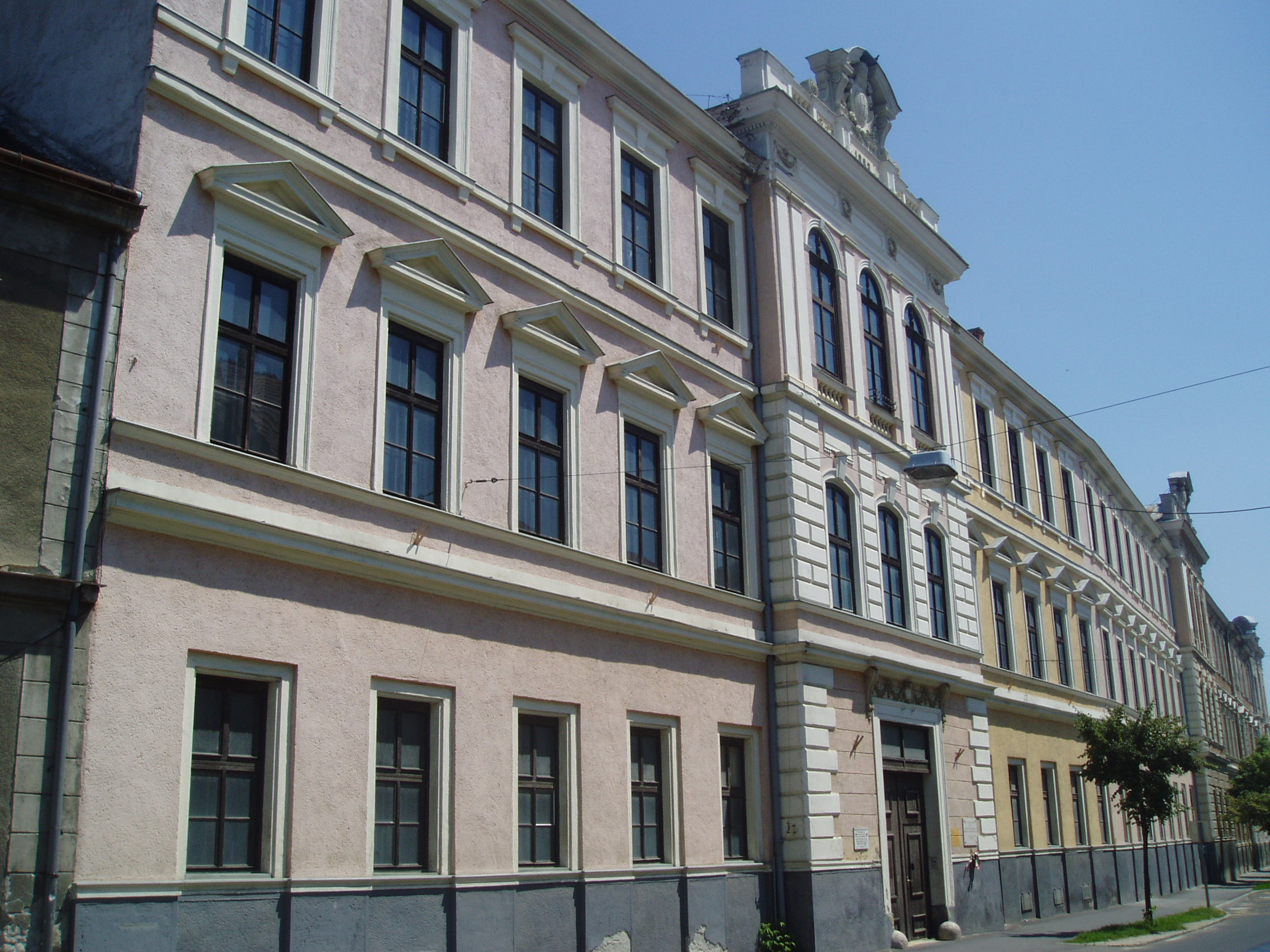 Nyilvános 1394 | 1801 | Sopron, Rákóczi utca 8. | Ebben az épületben működött 1944-ig a Magyar Királyi Zrínyi Ilona Honvédtiszti Leánynevelő Intézet. 1921. december 17-én itt hirdették ki a Sopron sorsát eldöntő népszavazás eredményét. A kép 2008 júniusában készült. |