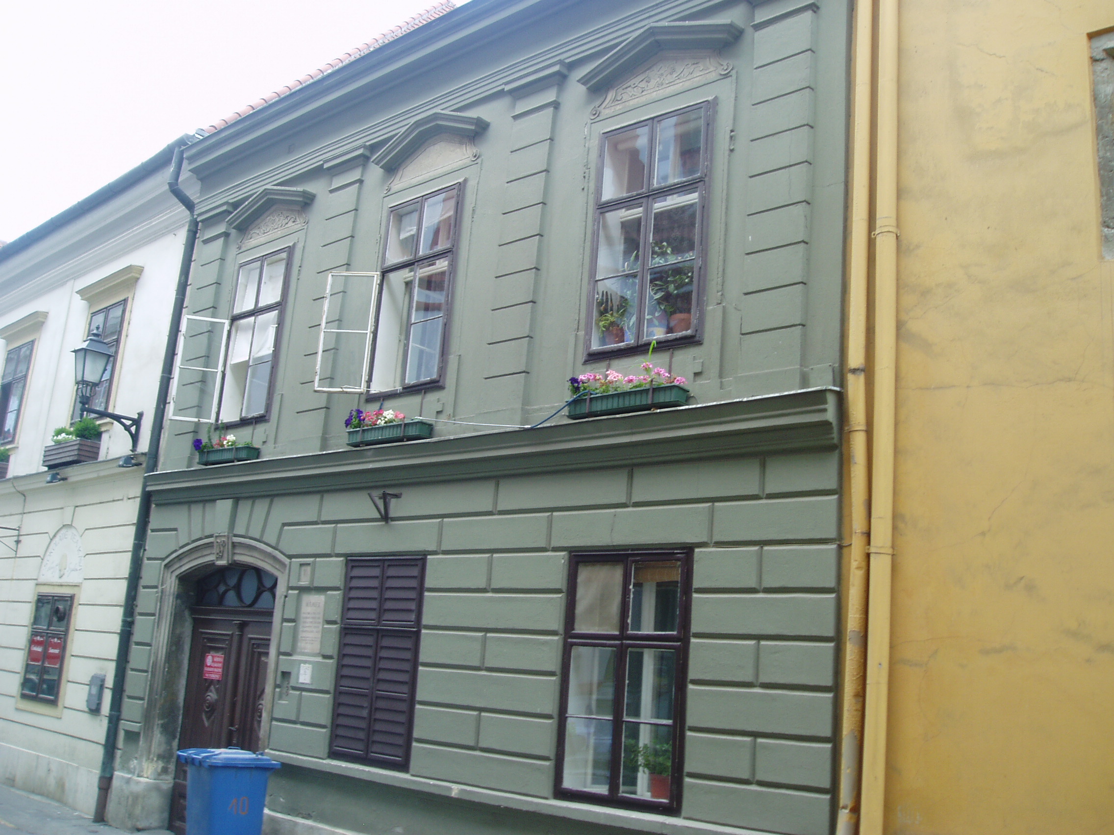 Nyilvános 1383 | 1694 | Sopron, Szent György utca 10. | Az egyemeletes barokk lakóház a XVI. században épült. A XIX. század második felében erősen átalakított homlokzata a XVIII. századból származik. Az épület belseje csaknem hiánytalanul őrzi XVIII. századi állapotát. Emeleti, boltozott utcai szobáiban virágdíszes festés látható. A kép 2008 júniusában készült. Felh. irod.: Czellár Katalin: Sopron. 3. jav. kiad. Bp. Panoráma, 2000 |