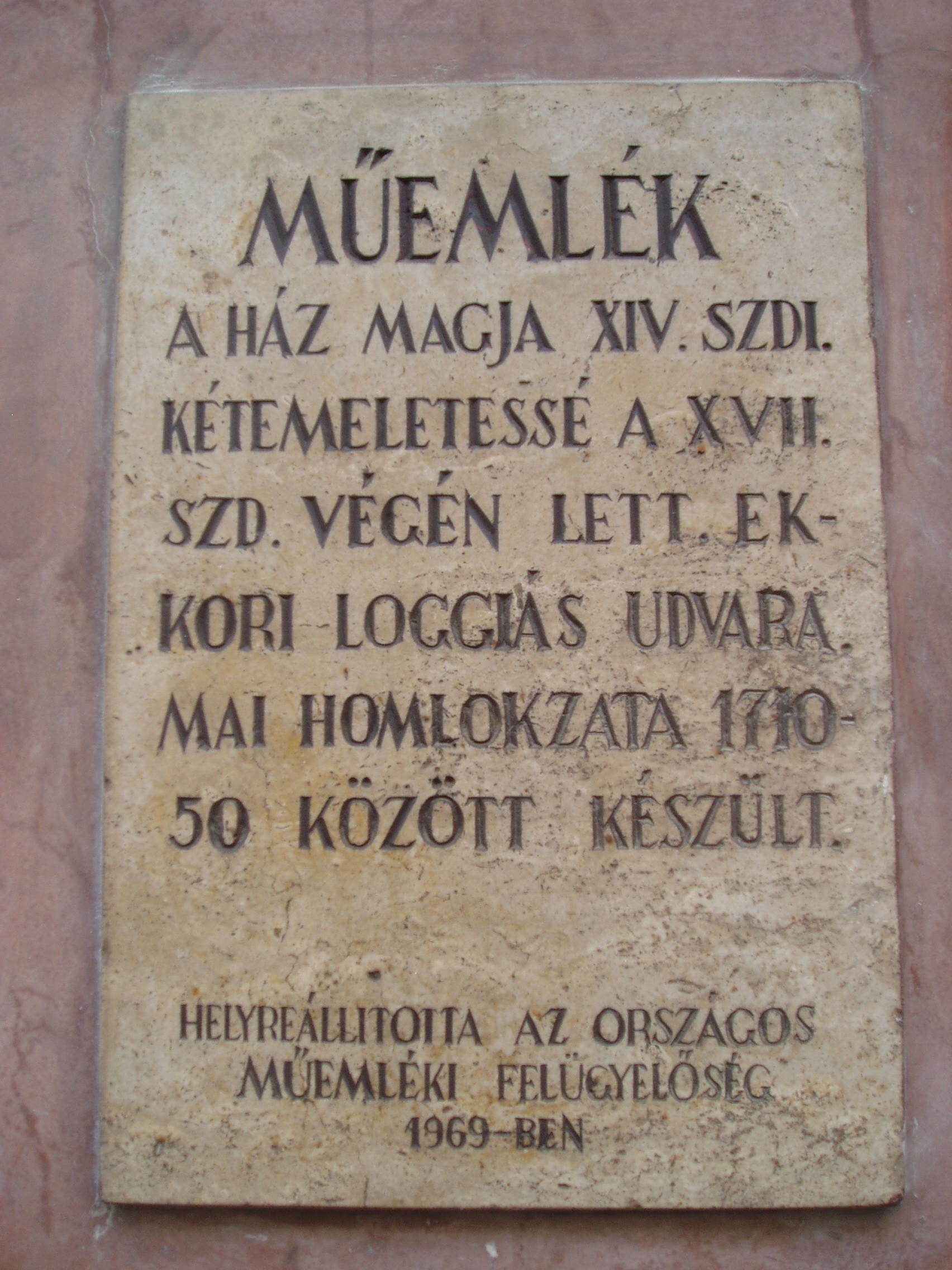 Nyilvános 1392 | 1702 | Sopron, Szent György utca 13. | A XVI. századi házat a XVII. század végén alakították kétemeletessé, ekkor készültek udvarának loggiái is. Homlokzata 1710-1750 között formálódott ki. A folyosó egyes részeinek mennyezetét XVIII. századi stukkók díszítik. Ismert tulajdonosa volt a XVIII. század első felében Csáky generális. A kép 2008 júniusában készült. Felh. irod.: Czellár Katalin: Sopron. 3. jav. kiad. Bp. Panoráma, 2000 |