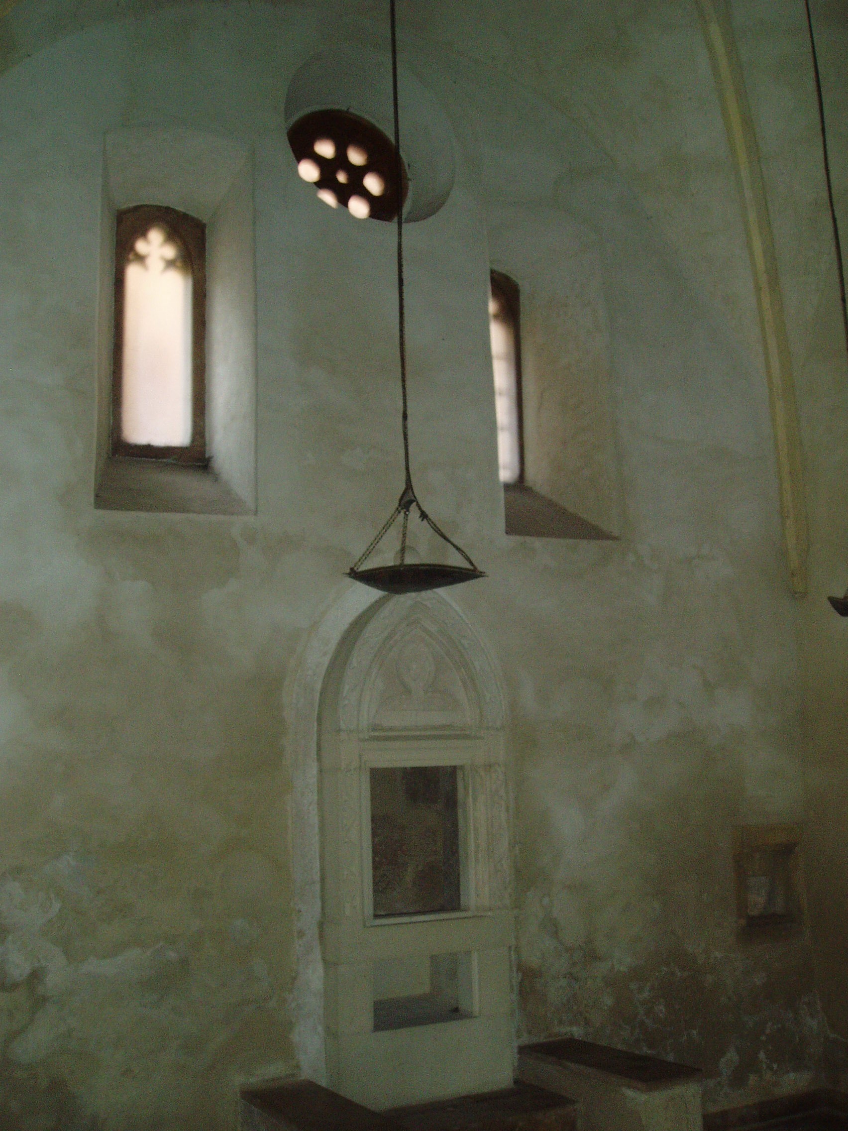 Nyilvános 1316 | 1651 | Sopron, Új utca 11. | A középkori eredetű lakóház középkori zsinagógát rejt. Az első zsidók a XIII. században települtek be Sopronba. 1370 körül épült ez az imaházuk, egy Izrael nevű bankár magánzsinagógájaként. A többször átalakított épület egyszerű barokk homlokzatának bal oldalán nyílik a kosáríves kapuzat, amelyen át beléphetünk a középkori templomba: elsőként egy utcára nyíló, boltozatos terembe, majd innét magába a zsinagógába. A két emelet magas termet kétszakaszos keresztboltozat fedi s gótikus kőrácsú ablakokon át kap fényt. A keleti falba mélyül az Áron-fülke, azaz a frigyszekrény. A jobbra lévő kis, kőkeretes fülkében valószínűleg kegyszereket tartottak. A kép 2008 júniusában készült. Felh. irod.: Czellár Katalin: Sopron. 3. jav. kiad. Bp. Panoráma, 2000 |