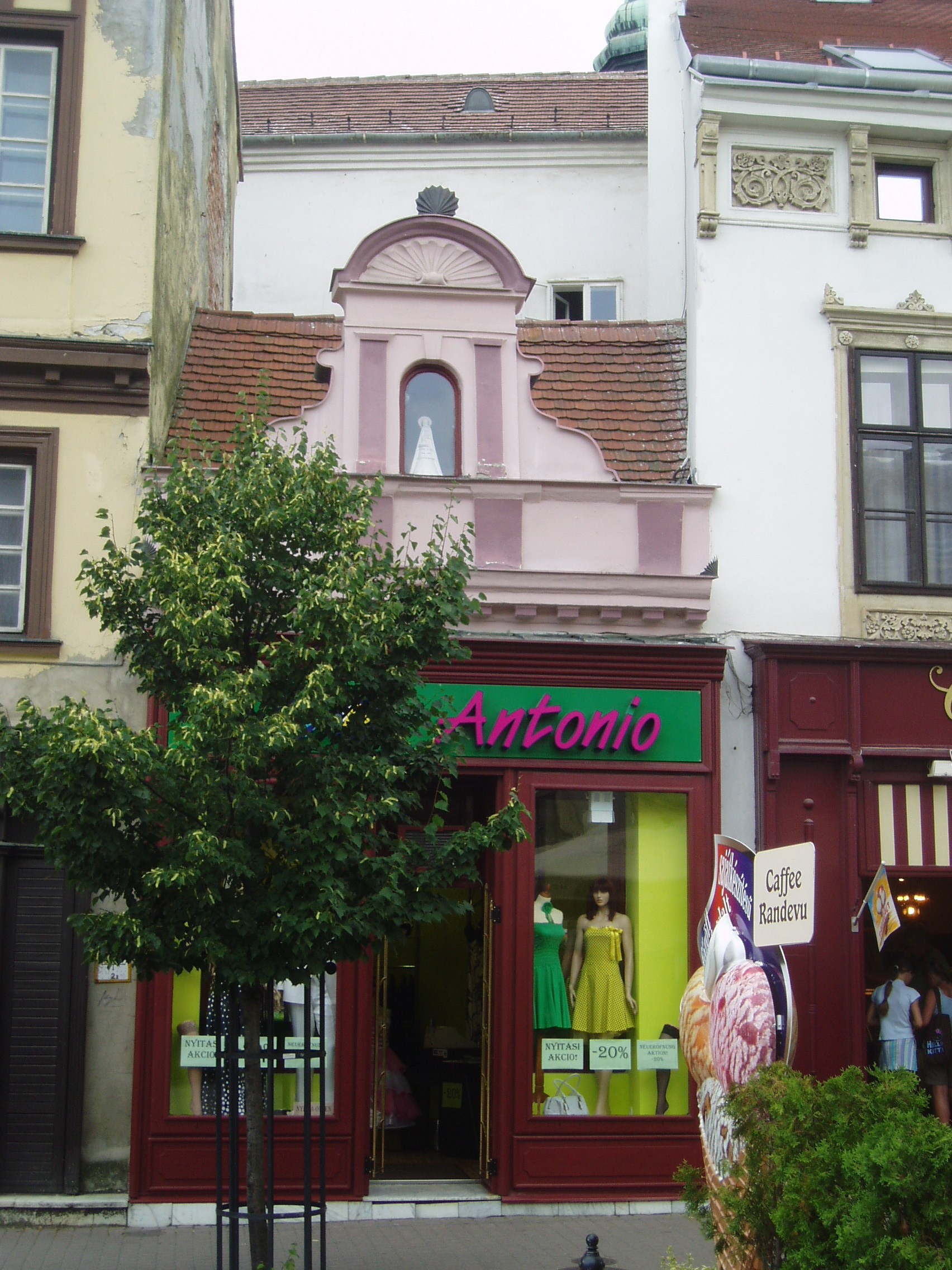 Nyilvános 1305 | 1796 | Sopron, Várkerület 42. | Sopron - és talán az egész ország - legkisebb üzletháza: alapterülete mindössze 1 négyszögöl. A kép 2008 júniusában készült. Felh. irod.: Czellár Katalin: Sopron. 3. jav. kiad. Bp. Panoráma, 2000 |