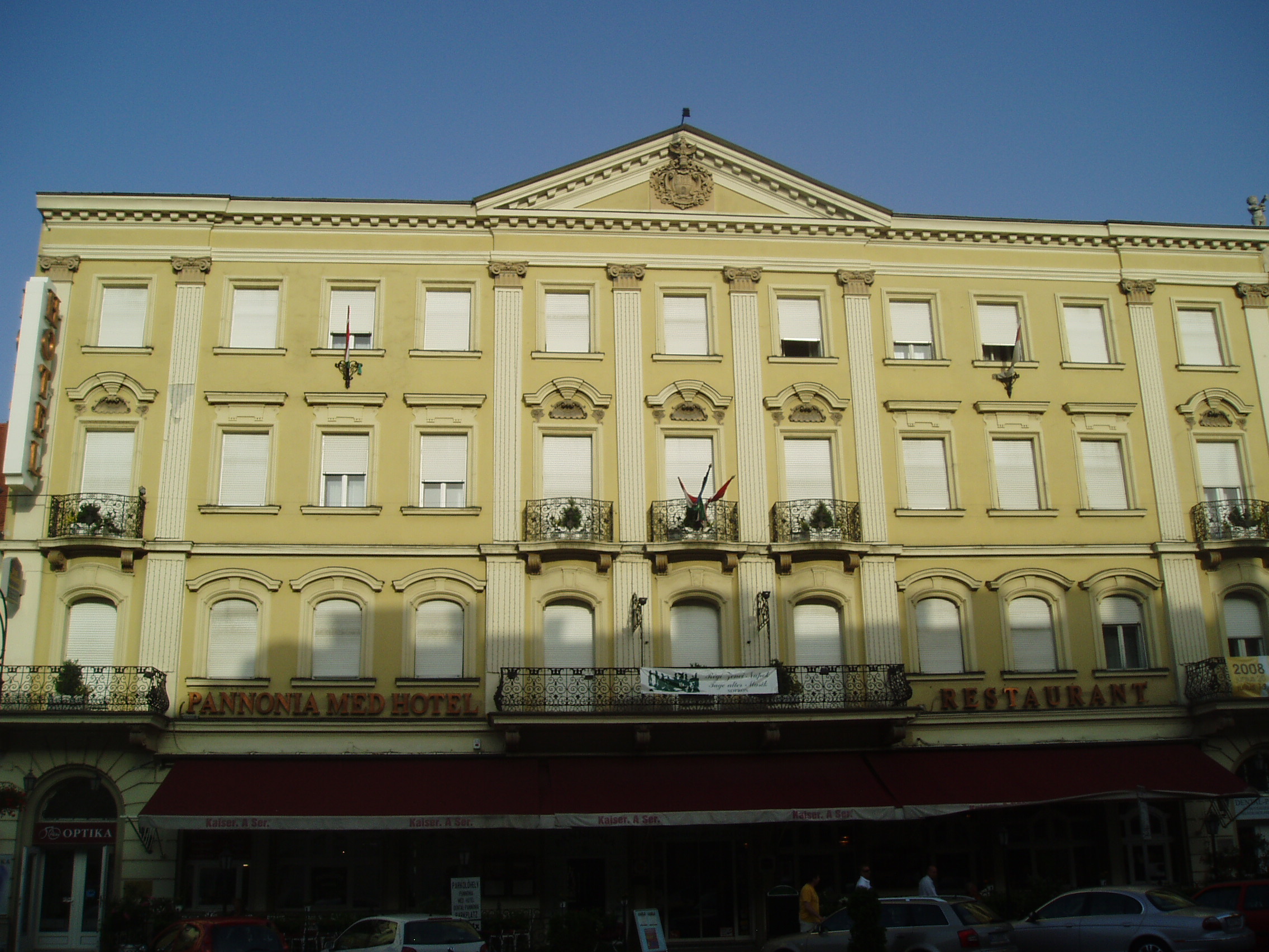 Nyilvános 1356 | 1865 | Sopron, Várkerület 75. | A mai Pannónia Szálloda helyén egykor az Arany Szarvas fogadó állott, amely évszázadokon keresztül szolgált szállásul a Sopronba látogatóknak. Többször leégett, de mindannyiszor helyreállították. Csatkai Endre soproni helytörténész szerint ide tért be 1882-ben a keringőkirály, ifj. Johann Strauss is, amikor fiatal feleségével együtt — inkognitóban — a városban tartózkodott. A vendéglőben muzsikáló neves cigányprímás, Munczy Lajos tüstént felismerte, s a fogadó vendégei lelkesen köszöntötték a zeneszerzőt, aki azonban rövidesen "elmenekült" a szüntelen ünneplés elől. A patinás szállodát 1892-ben lebontották, s a következő évben Hinträger Móric tervei szerint felépült a ma is működő Pannónia. Itt szállt meg 1928. december 2-i koncertje alkalmából Bartók Béla. A kép 2008 júniusában készült. Felh. irod.: Czellár Katalin: Sopron. 3. jav. kiad. Bp. Panoráma, 2000 Csatkai Endre: A soproni muzsika története. Sopron, 1925 Nagy Alpár: Bartók Béla soproni kapcsolatai. = Életünk 1975. 5. |