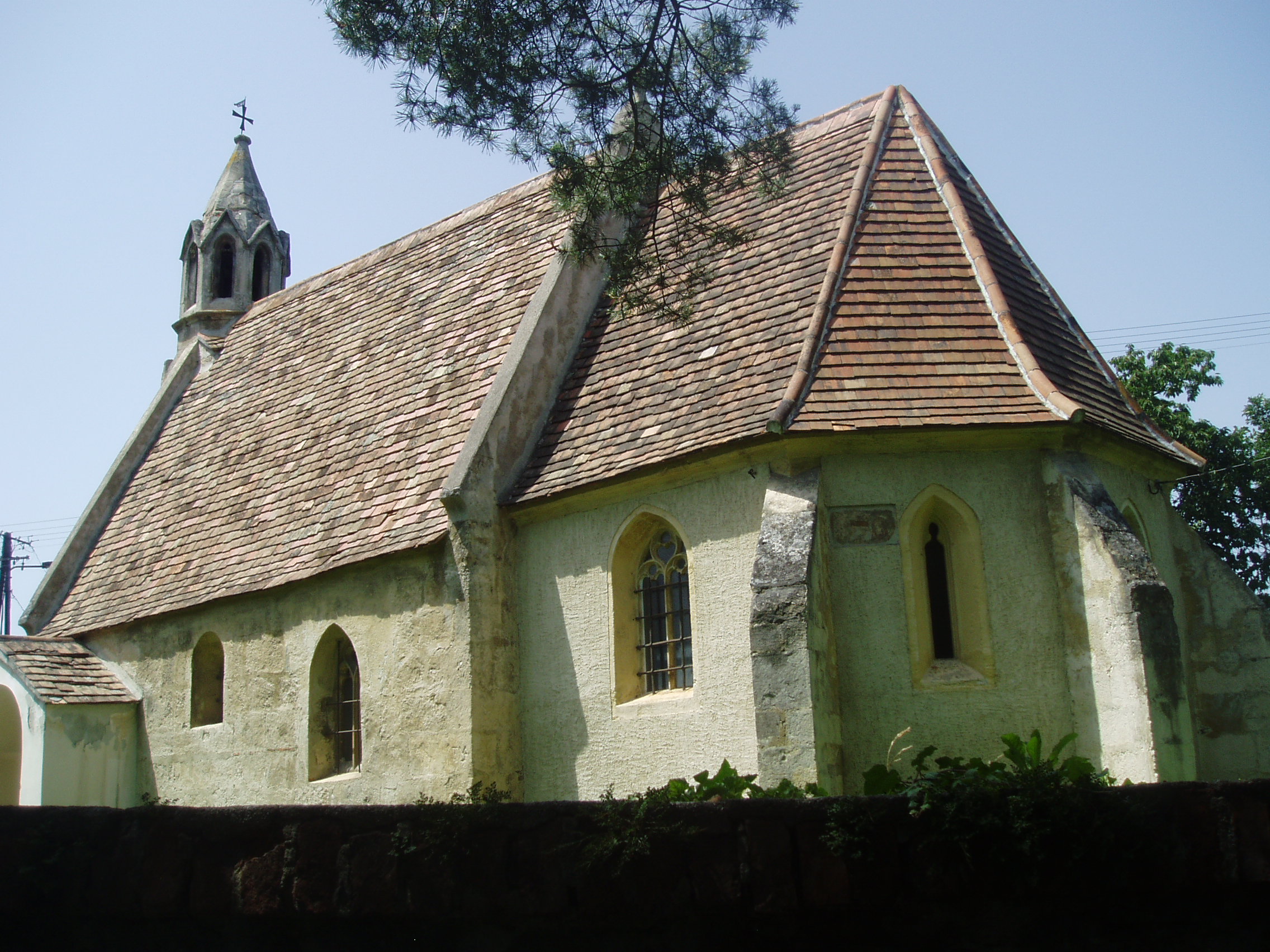 Nyilvános 1516 | 3574 | Sopronbánfalva: Bánfalvi út: Mária Magdolna-templom | A kis templom a falu egyik legértékesebb műemléke. 1291 előtt épült. Gótikus tornya a XIV. század elejéről származik, ugyancsak gótikus szentélye pedig a XV. századból. A kép 2008 júniusában készült. Felh. irod.: Czellár Katalin: Sopron. 3. jav. kiad. Bp. Panoráma, 2000 |
