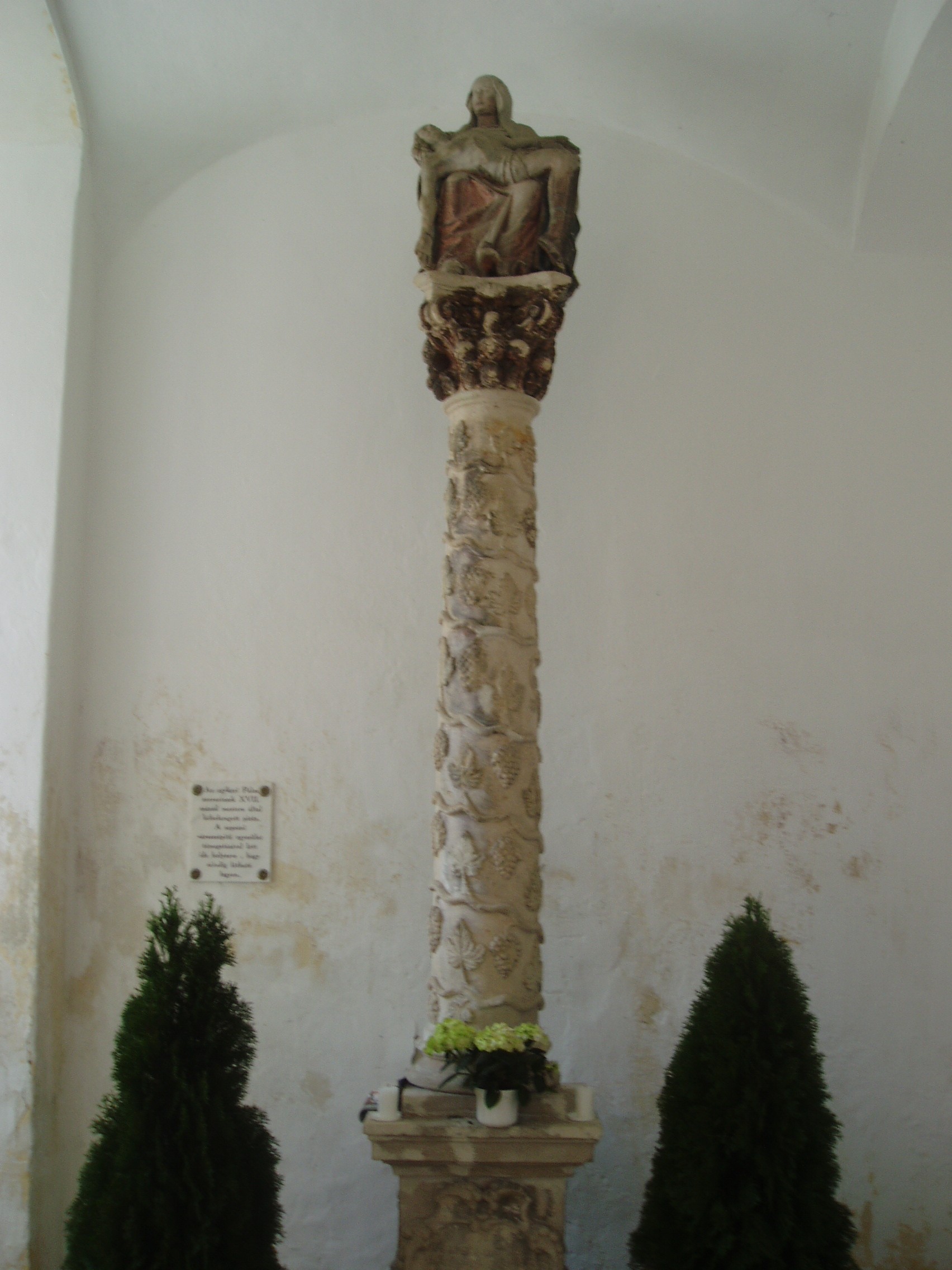 Nyilvános 1401 | 1923 | Sopronbánfalva: Kolostorhegy út: Karmelita templom és kolostor | Sopronbánfalva fölött a Sopronból Brennbergbányára vezető út déli oldán magas domb emelkedik. A dombot uraló gótikus eredetű, első formájában a XV. század végén épült templom és a hozzá csatlakozó barokk kolostorszárnyak eredetileg pálos szerzetesek, majd karmelita apácák otthona volt. Az épületegyüttest a település központjával a meredek domboldalban egyenesen húzódó díszes lépcső köti össze, amelyet karmelita-, vagy pálos lépcsőként ismer a köztudat. A lépcső hét lépcsőkarból és hét pihenőből áll. A pihenőkön, a baluszteres mellvéden jobbról-balról egy-egy szent kőszobra áll. A kép 2008 júniusában készült. Felh. irod.: Czellár Katalin: Sopron. 3. jav. kiad. Bp. Panoráma, 2000 |
