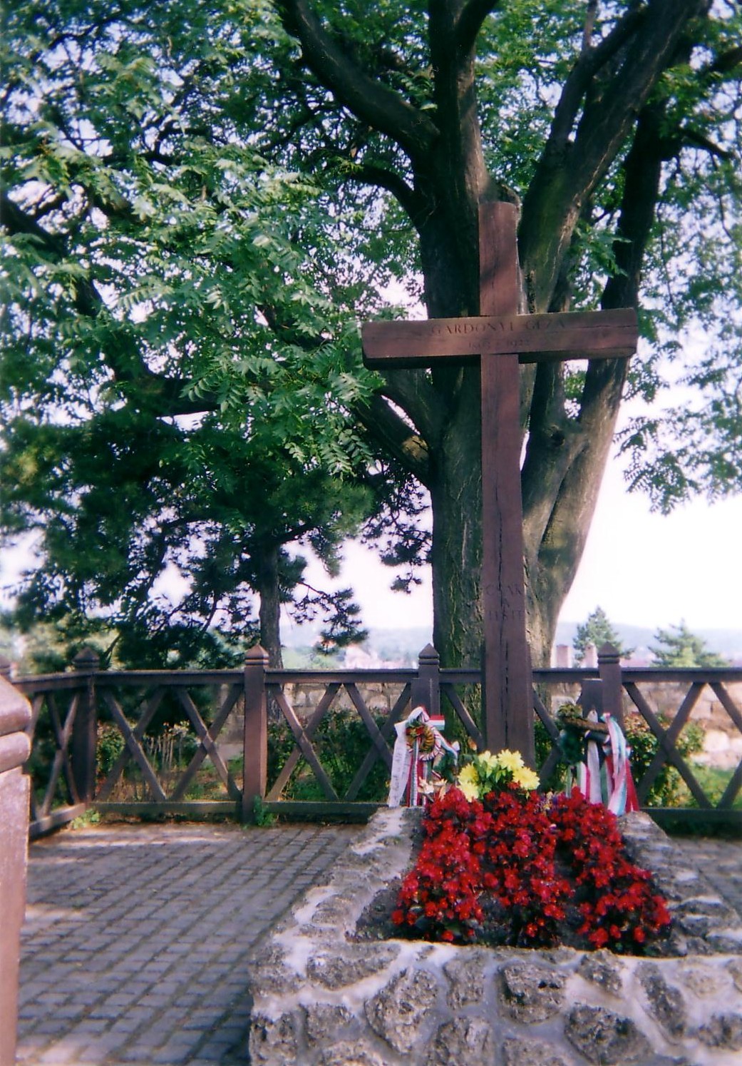 Nyilvános 1895 | 3991 | Eger, Vár: Gárdonyi Géza sírja | Gárdonyi Géza 1897-ben költözött Egerbe, s haláláig itt lakott. Otthonában hunyt el 1922. október 30-án. A vár közelében levő háza 1925 óta múzeum. A vár és vitézeinek tette a XX. században lett legendává, amikor Gárdonyi Géza itt Egerben megírta Egri csillagok című regényét. Az írót a várban, a Bebek-bástyán helyezték örök nyugalomra. Felh. irod.: Eger. Bp. Panoráma, 1973 Wellner István: Eger. Bp. Panoráma, 1987 www.vendegvaro.hu |