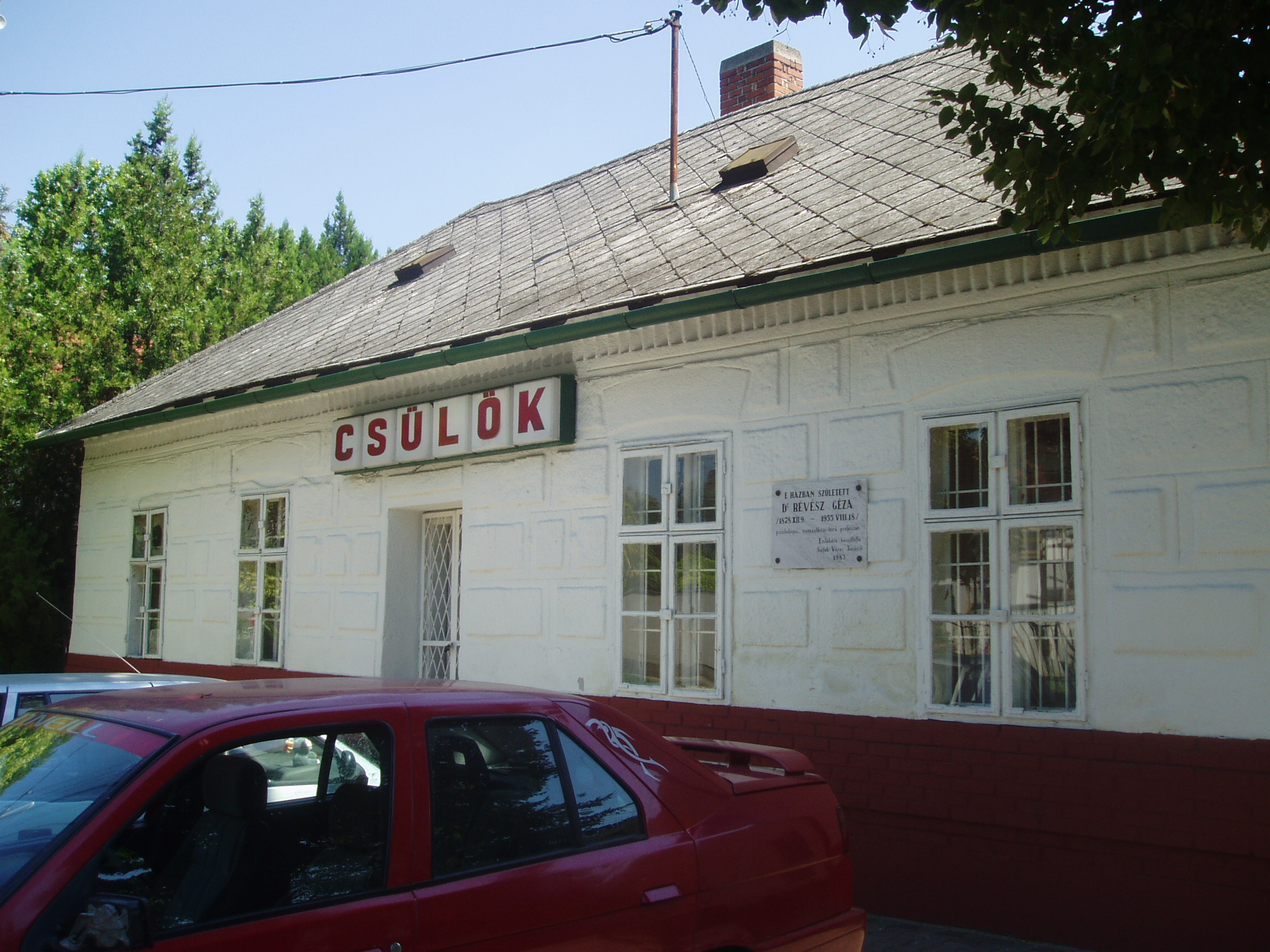 Nyilvános 1454 | 2258 | Siófok, Bajcsy-Zsilinszky utca 48. | 1878. december 9-én ebben a házban született Révész Géza pszichológus, nemzetközi hírű professzor. Elsősorban zenepszichológiával és hangfiziológiával foglalkozott. 1919-ben emigrált. 1921-től Amszterdamban működött, mint az ottani kísérleti lélektani intézet igazgatója. 1932-1950 között az amszterdami egyetemen a lélektan tanára volt. 1949-től a bajor tudományos akadémia tagja. A würzburgi egyetem díszdoktorává avatta. Amszterdamban hunyt el 1955. augusztus 18-án. A fénykép 2006 júliusában készült. Felh. irod.: Magyar életrajzi lexikon |