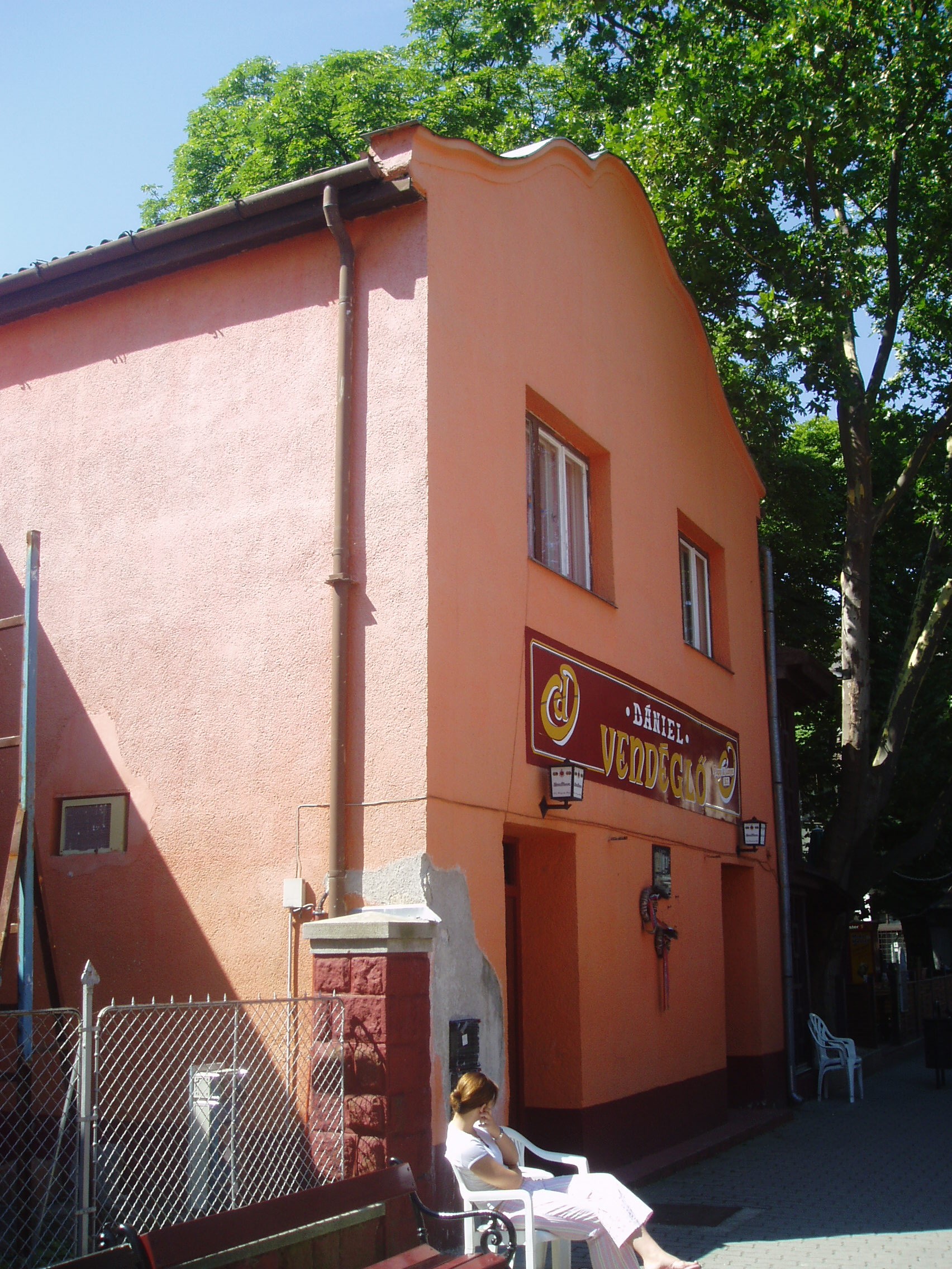 Nyilvános 1563 | 2789 | Siófok, Kálmán Imre sétány 3. | A város szívében, a sétálóutca központi részén található az egykori Kovács cukrászda, amely ma Siófok egyik legkellemesebb hangulatú étterme. Homlokzatán Feleki Kamillra, az operett műfajának kimagasló egyéniségére emlékező fekete márványtábla fogadja a sétálót, aki gyermekkorában ebben a házban töltötte nyarait testvéreivel együtt. A házban apai nagyszülei vezették az akkori vendéglőt. A fénykép 2006 júliusában készült. Felh. irod.: Matyikó Sebestyén József: Feleki Kamill és Siófok. = Siófoki Hírek 2003. júl. 23. |