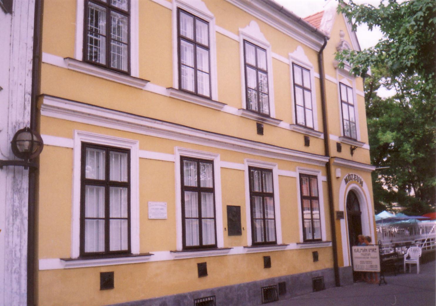 Nyilvános 1595 | 2592 | Siófok, Kálmán Imre sétány 5. | Ebben a vasútállomáshoz közeli házban született 1882-ben a magyar operett egyik legjelentősebb zeneszerzője, Kálmán Imre. Születése napja bizonytalan, még a család sem tudta eldönteni, hogy október 24-én, vagy 25-én jött-e a világra. Édesapja Koppstein Károly Siófokon gabonakereskedő és vállalkozó volt. Édesanyja Singer Paula - szelíd, művészlelkű asszony - megérte fia világhírét. Kálmán Imre a harmadik gyerekként született. Nevét később, a gimnáziumi évek alatt magyarosította Kálmánra. A kis Imre korán tanújelét adta zenei érdeklődésének, tehetségének, amit a családból hozott magával: felmenői között anyai ágon muzsikusok, apai ágon kiváló rabbik, tanítók voltak. Még nem volt hat éves, amikor egy nyáron náluk vett ki szobát Liedl Ferenc hegedűművész, tőle kapott először a kisfiú zenei leckéket. Gyermekként járt először színházban is, a házuk közvetlen szomszédságában egykor állott Nyári Színkörben (lásd: Siófok, Kálmán Imre sétány 6.). Elemi iskolai tanulmányait az egytanerős izraelita népiskolában végezte. Első hivatásos zenetanára még elemista korában a helybeli Remcsák Antal volt. Elemi iskoláinak befejeztével Budapesten tanult tovább a Deák téri Evangélikus Főgimnáziumban. Közben édesapja üzleti vállalkozásai teljesen tönkrementek, mindenüket elárverezték, s a család elhagyta Siófokot. Kálmán Imre a budapesti Zeneakadémián végzett tanulmányai mellett családi követelésre jogot is hallgatott. S bár a Zeneakadémián — ahol évfolyamtársa volt például Bartók Béla — még szimfóniákról álmodott, operettszerzőként lett világhírű. Siófoki szülőházában — amelyet először 1955-ben jelöltek meg emléktáblával — 1970-ben özvegye, Kálmán Vera jelenlétében avattak emlékszobát. A mostani, gazdagabb anyagú emlékmúzeumot a zeneszerző születésének 105. évfordulója alkalmából, 1987. október 22-én nyitották meg. Jelenleg az emlékmúzeum a szülőház földszinti termeiben található, az emeleten kortárs képzőművészeti időszaki kiállításokat szoktak rendezni. A fénykép 2006 júliusában készült. Felh. irod.: Kálmán Imre Múzeum Siófok. Szerk. Koch József. Siófok, 2000 http://www.kalmanimre-muzeum.hu/ |