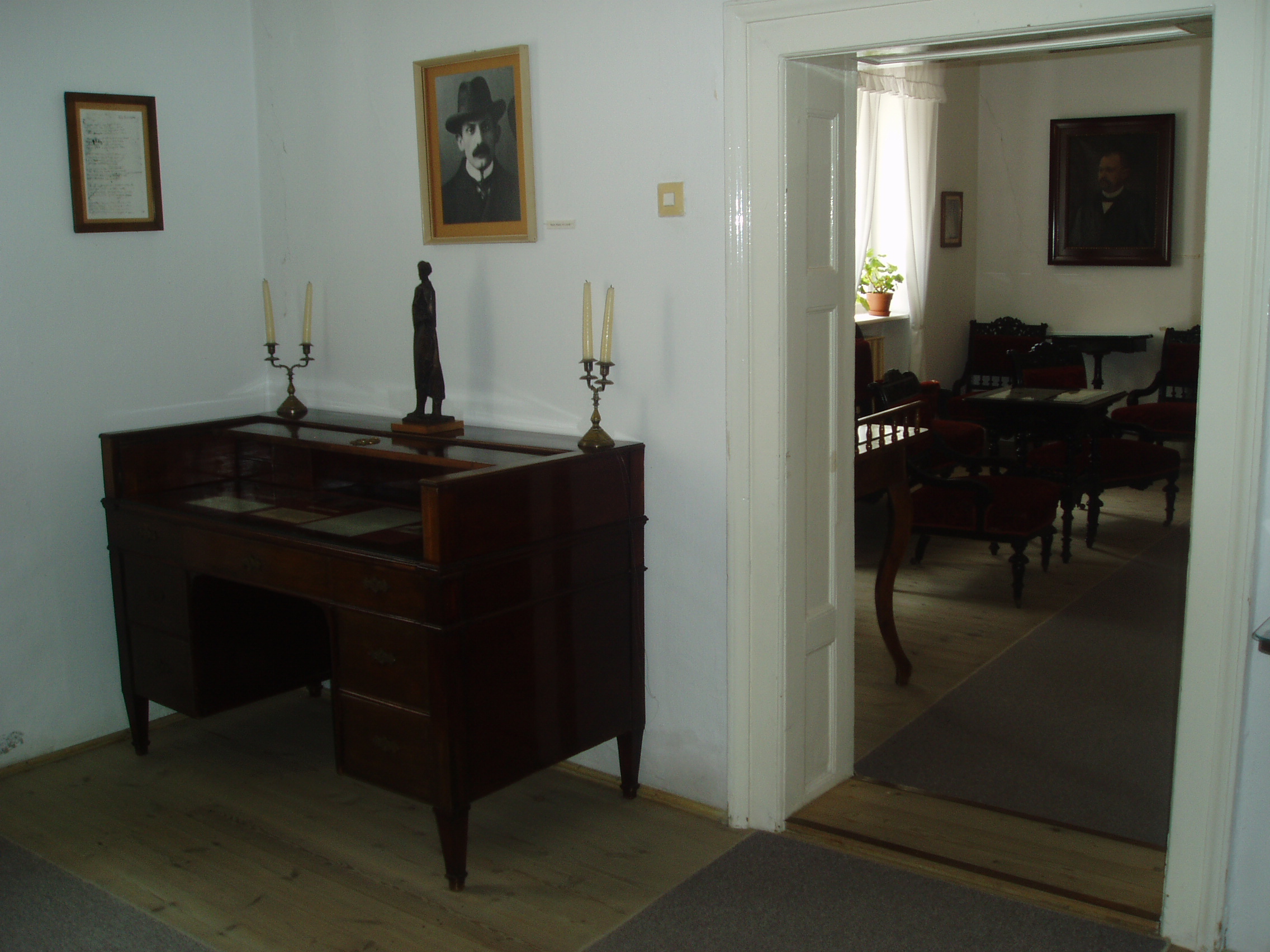 Nyilvános 1943 | 3966 | Szekszárd, Babits Mihály utca 13. Babits Mihály Emlékház | Babits Mihály egyemeletes, copf stílusú szülőháza a XIX. század elején (egyes források szerint 1780 körül) épült az akkor a város védőszentjéről Szt. Lászlónak nevezett utcában. A költő anyai nagyapja 1852-ben, szekszárdi letelepedésekor vásárolta meg. Itt született a költő 1883. november 26-án, s sokat tartózkodott és alkotott ezen a helyen. 1967-ben rendezték meg a házban az első emlékkiállítást, amelyet 1983-ban, a költő születésének centenáriumán újjáalakítottak, s az egész épületet emlékháznak rendezték be. A költő relikviái, a család bútorai, használati tárgyai és dokumentumai mellett láthatók Farkas Pál, Rippl-Rónai József, Glatz Oszkár és Beck Ö. Fülöp Babitsot ábrázoló képzőművészeti alkotásai is. Babits Mihály számos verse itt született, és itt játszódik a Halálfiai című regény több fejezete is. Az épület udvarán 1981-ben avatták fel Babits Mihály szobrát, Farkas Pál alkotását. Babits szülőházában állandó kiállítás idézi a szintén szekszárdi születésű Dienes Valéria filozófus és Baka István költő, író emlékét. A fénykép 2006 júliusában készült. Felh. irod.: www.szekszard.hu www.museum.hu Töttős Gábor: Babits bölcsői körül. = Tolna Megyei Levéltári Füzetek 6. Szekszárd, 1977 |