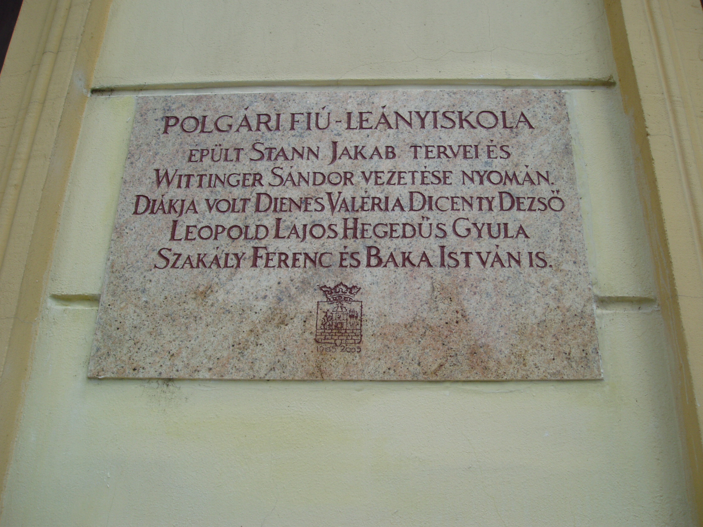 Nyilvános 1495 | 2221 | Szekszárd, Garay tér 9. | Az egykori polgári fiú- és leányiskola 1876-ban épült koraeklektikus stílusban Stann Jakab tervei szerint. Mint a homlokzatán elhelyezett emléktáblán is olvasható, több neves diák tanult itt, többek között Dienes Valéria filozófus, az orkesztika megalapítója (lásd még: Szekszárd, Babits M. u. 17.), Szakály Ferenc történész és Baka István író. A fénykép 2006 júliusában készült. Felh. irod.: http://www.szeki.hu/turista/kalauz/magyar/tu000063.htm |