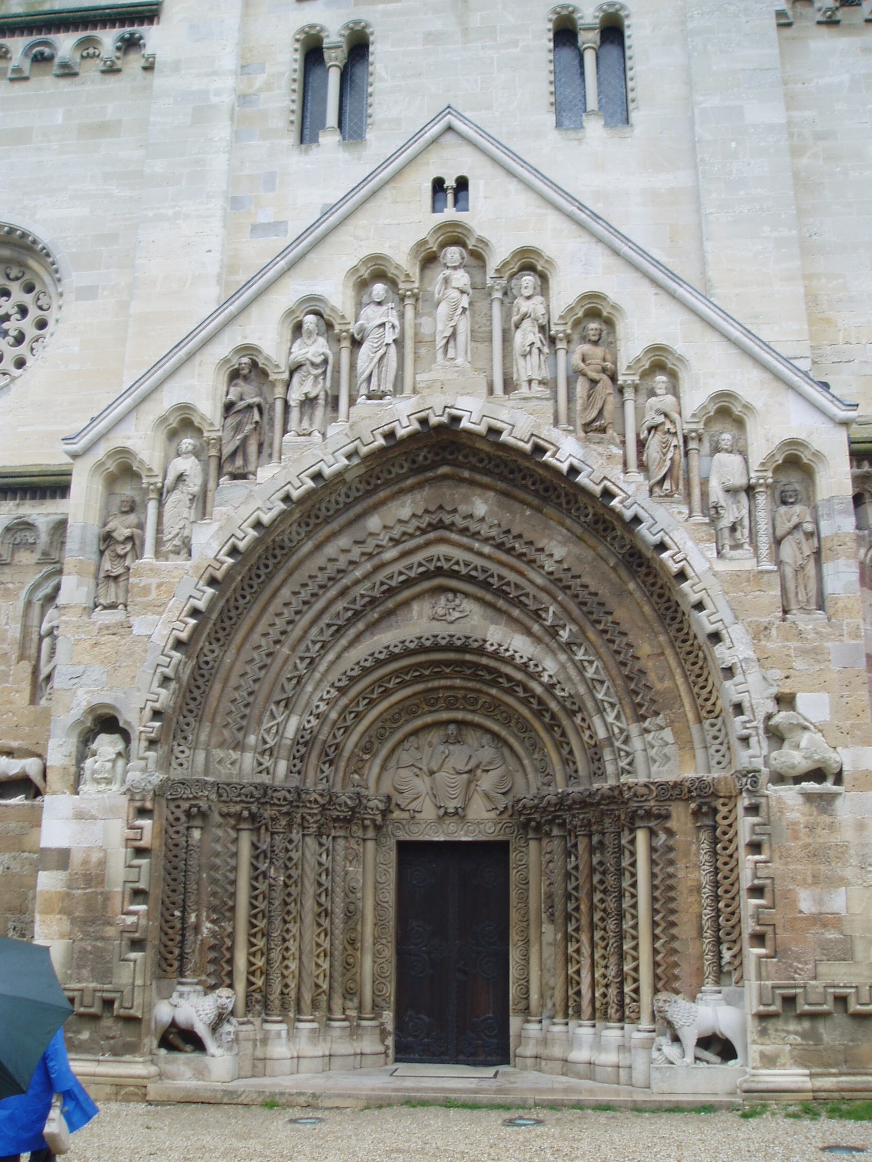Nyilvános 1933 | 4647 | Ják, Templom | A jáki apátsági templom, az egykori jáki bencés apátság monumentális bazilikája a magyarországi román stílusú építészet kiemelkedő, szinte szimbolikus alkotása. A hazai középkori nemzetségi monostorok egyedülálló épségben fennmaradt képviselője, mely művészi gazdagságával, a táj képébe illeszkedő mesteri elhelyezésével hívja fel magára a figyelmet. A templomot az 1220-as években Jáki Nagy Márton alapította, az első olyan nemes (nobilis), akit oklevélben is már így említenek. Gazdagságáról és hatalmáról is tanúskodik, hogy birtokainak középpontjában kora egyik legmonumentálisabb templomát kezdte el építtetni, hogy majd nevének és nemzetségének méltó emlékeként évszázadokig álljon és uralkodjon a táj felett. A monostor apátja már 1223-tól szerepel az oklevelekben és ismert a templom felszentelésének időpontja is, amely a tatárjárás miatt későbbre húzódott: 1256. május 2. Építtetője a templomot Szent Györgynek, a bizánci egyház lovagszentjének tiszteletére szenteltette fel, akinek képét a főoltár mögötti falra is felfestették. A templom története szorosan kapcsolódik a mellette épült egykori kolostor történetéhez. Tulajdonosai többször is változtak: 1455-ben Elderbach Bertold kapta, majd fia végrendeletileg Bakócz Tamásra hagyta, majd Bakócz örököseié, az Erdődy családé volt. A kolostor életében sorsdöntő volt az 1532-es esztendő. Ekkor a Kőszeget ostromló török a kolostort is megtámadta és a templommal együtt súlyosan megrongálta. A török elvonulása után a szerzetesek még valószínűleg visszatértek, de 1562 után már bizonyosan megszűnt minden kolostori élet, s hamarosan maga az épület is elpusztult. A templom csodálatos módon illik a környező tájba, mesteri elhelyezése miatt már 10-15 km-ről jól látható, mintegy uralja a vidéket. Tömbszerű, zömök sziluettje már messziről felhívja magára a figyelmet. A templom bélletes főkapujának látványa első látásra is ámulattal tölti el a szemlélőt, az egykori építőmester úgyszólván minden díszt ide összpontosított. Mindent elborít a változatos és gazdag díszítés, melyet a geometriai mintákat felhasználó ún. normann díszítőstílus jellemez. A kapuépítmény homlokzatát a magyarországi román stílusú szobrászat ékkövei, Krisztus és a 12 apostol lépcsőzetesen emelkedő életnagyságú szobrai díszítik. Ma már csak másolatok láthatók itt; az eredeti szobrokat a szombathelyi Savaria Múzeumban őrzik (lásd: Szombathely, Kisfaludy u. 9.). A fénykép 2006 júniusában készült. Felh. irod.: Dercsényi Dezső: A jáki templom. Bp. Corvina, 1979 |