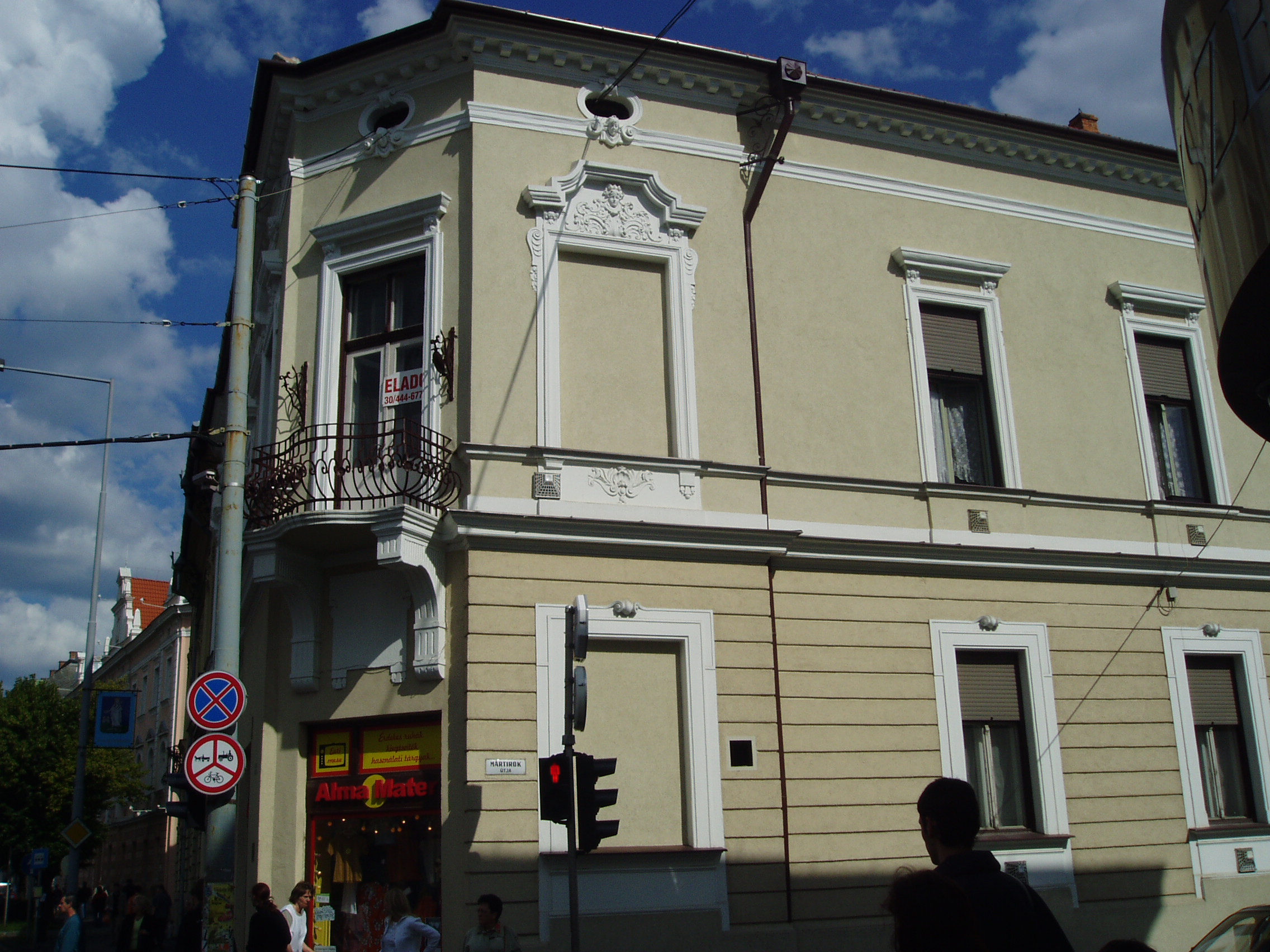 Nyilvános 1623 | 3367 | Zalaegerszeg, Mártírok útja 2. | Ebben a városközponti épületben született 1904. szeptember 6-án Keresztury Dezső (1904-1996) író, irodalomtörténész, kritikus, műfordító, miniszter, akadémikus. Édesapja ügyvéd volt, 1915-18 között a város polgármestere. Elemi iskolai tanulmányait és a gimnázium első négy osztályát szülővárosában végezte. Berlini évek után 1936-43-ban az Eötvös Kollégium tanára, közben 1937-43-ban a Pester Lloyd rovatvezetője volt. 1945-47-ben vallás- és közoktatásügyi miniszter, 1945-48-ban az Eötvös Kollégium igazgatója, 1948 után az MTA főkönyvtárnoka, 1950-71 között az Országos Széchenyi Könyvtár főosztályvezetője, 1985-től a Magyar Irodalomtörténeti Társaság elnöke, majd tiszteletbeli elnöke. 1973-tól az MTA levelező, 1982-től rendes tagja. A kortárs magyar irodalom sokoldalú művelője, a magyar irodalom- és művelődéstörténet elismert kutatójaként számos magyar és nemzetközi társaság tagja, kitüntetettje volt. 1968 után került újra szoros kapcsolatba szülővárosával, amelynek 1975-ben díszpolgára lett. 1993-ban megjelent "Emlékezéseim. Szülőföldjeim" című önéletrajzi kötete itt töltött gyermekkorának emlékeit is felidézi. Egykori iskoláját több alapítvánnyal is támogatta; édesapja szőlőhegyi hajlékát a városnak adományozta, ahol fokozatosan könyvtára is helyet kap, s alkotóházként működik. Szülőházán 1999-ben helyeztek el emléktáblát. A felvétel 2006 júniusában készült. Felh. irod.: Zalai életrajzi lexikon. = http://zalai.dfmk.hu/zalaiak |