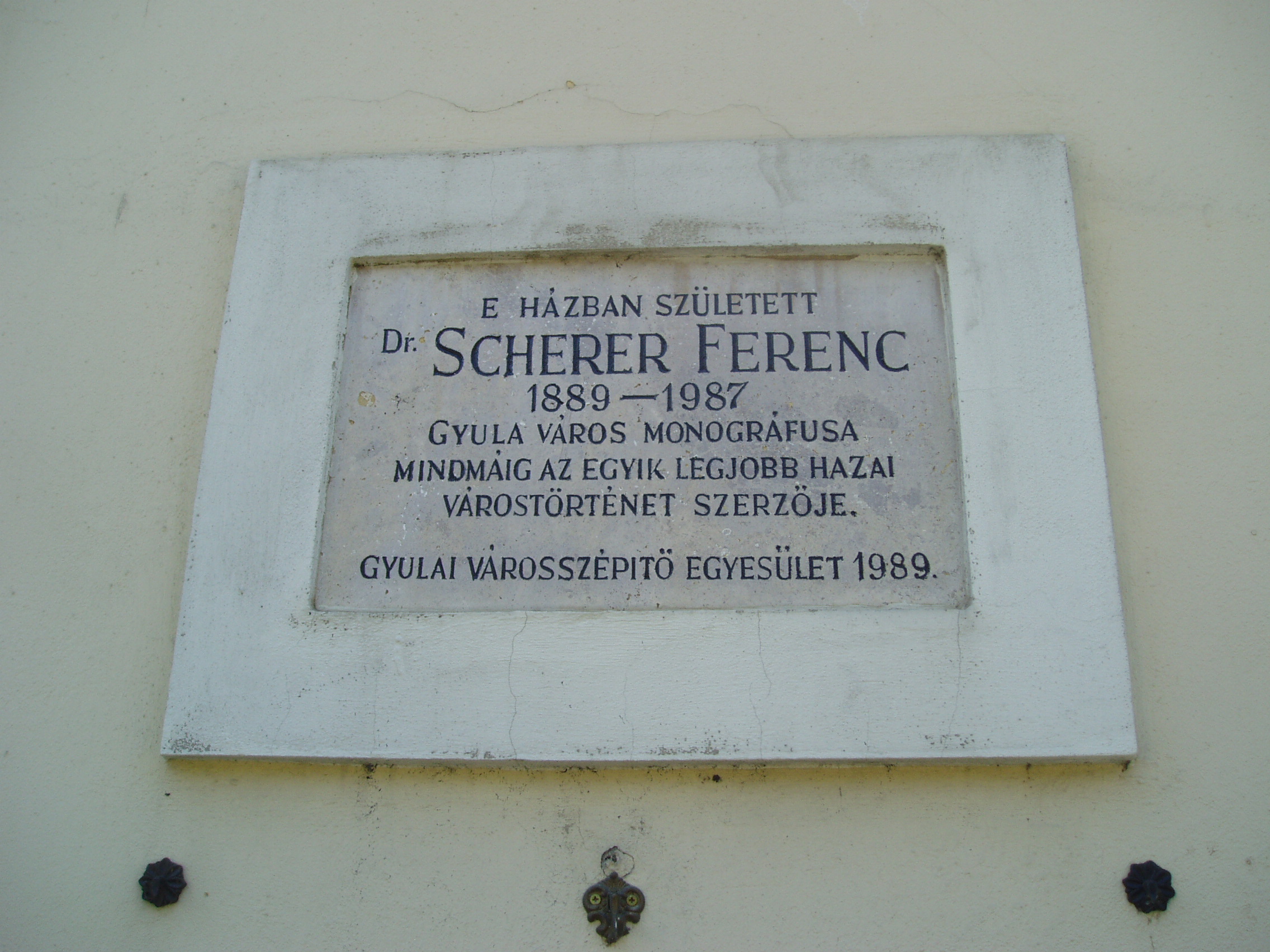 Gyula, Apor tér 7. A Dürer család emléktáblája Erkel F ...