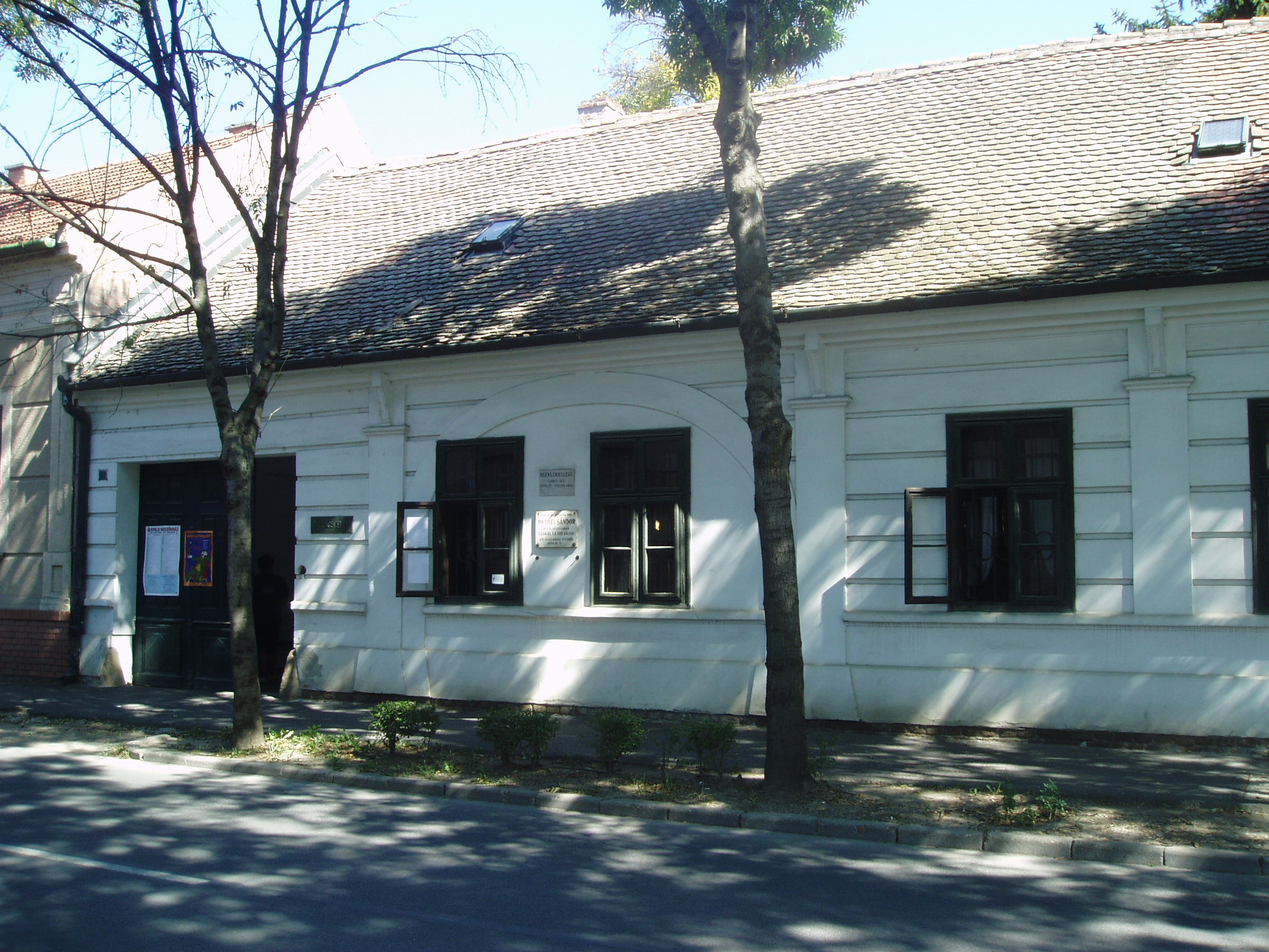 Nyilvános 1747 | 3181 | Gyula, Jókai utca 4. Ladics-ház | Az L alaprajzú, földszintes épület a XIX. század elején épült barokk stílusban a magyargyulai jegyző lakásának. 1849-ben a város eladta egy örmény származású tőzsérnek, akinek a családjába benősült dr. Ladics György jogász. Az ifjú pár ide költözött, s utódaik is itt éltek a ház múzeummá alakításáig. A hagyományőrző családban öt generáción át megmaradtak az életmódjukat tükröző bútorok, tárgyak, öltözékek, s a társas és szellemi életükről árulkodó tárgyak. Az épületet és a gyűjteményt 1978-ban a város megvásárolta, s a ritka együttest felhasználva múzeumot rendezett be. A múzeum hat szobában mutatja be a XIX-XX. század vidéki polgári elitjének életét. Az épület falán emléktábla jelzi, hogy 1849. júliusában ebben a házban szállt meg Petőfi Sándor, amikor Mezőberényből átjött a megyegyűlésre, hogy az országos eseményekről tájékozódjon. Házigazdája Békés megye akkori főjegyzője, Szakál Lajos népies költő volt, s itt tartózkodott Szakál unokatestvére, Sárosi Gyula is, az Arany trombita költője. A hagyomány szerint a három költő éjfélekig beszélgetett a haza sorsáról a szabadságharc utolsó szakaszában. A fénykép 2007 júliusában készült. Felh. irod.: Czeglédi Imre: Gyula útikalauz. 2., bőv. kiad. Gyula, 1995 |
