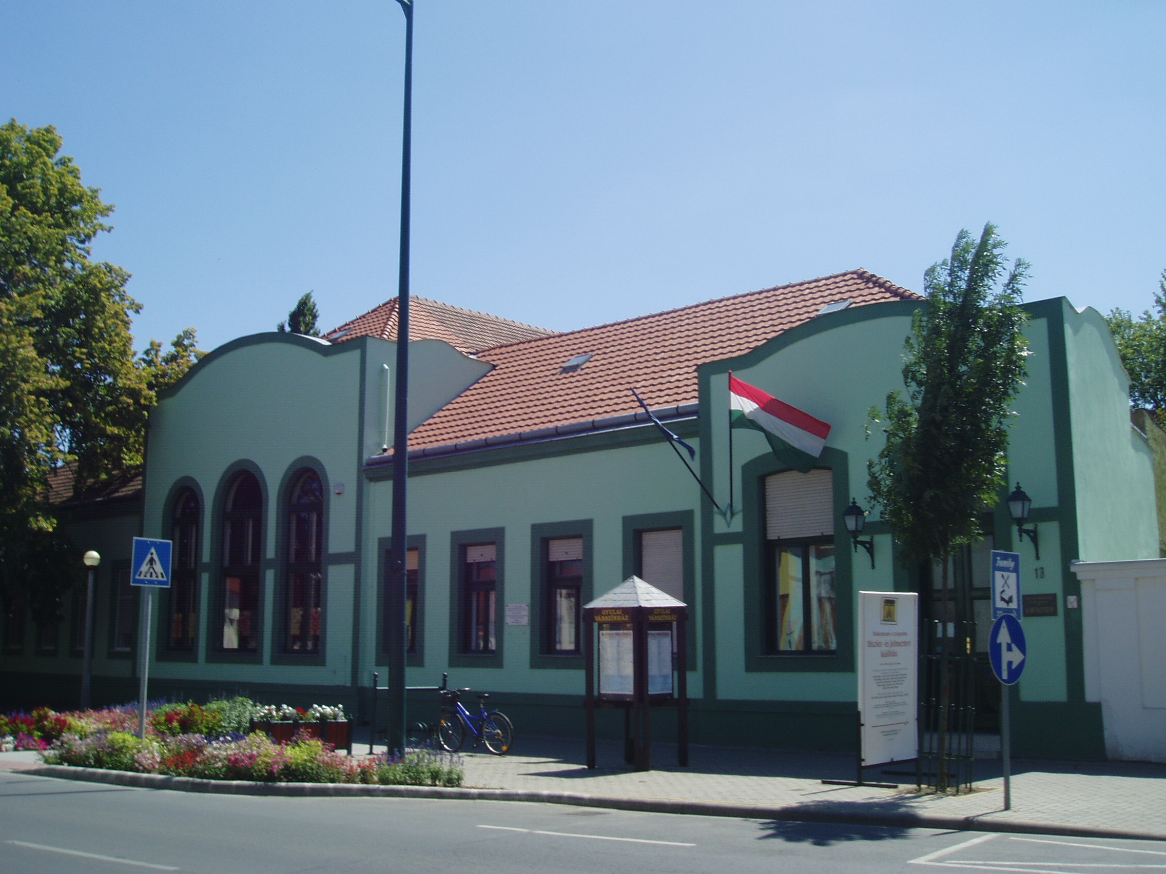 Nyilvános 1369 | 1804 | Gyula, Kossuth utca 13. Egykori Békésmegyei Kaszinó épülete | A szabadságharc idején ezen a helyen Kiss János későbbi megyefőnök háza állt. Nála szállt meg 1849 augusztusában rokona, Kiss Ernő honvéd tábornok. Az aradi tizenhárom között őt is kivégezték, emlékét márványtábla idézi a mostani épületen, amely 1906-ban épült Úri Kaszinónak, s a gyulai elit szórakozóhelye volt. Ma a Gyulai Várszínház igazgatósága található benne. A szabadságharc tragikus gyulai eseményét lásd: Gyula, Várkert: Honvédtiszti emlékhely. A fénykép 2007 júliusában készült. Felh. irod.: Czeglédi Imre: Gyula útikalauz. 2. jav., bőv. kiad. Gyula, 1995 |