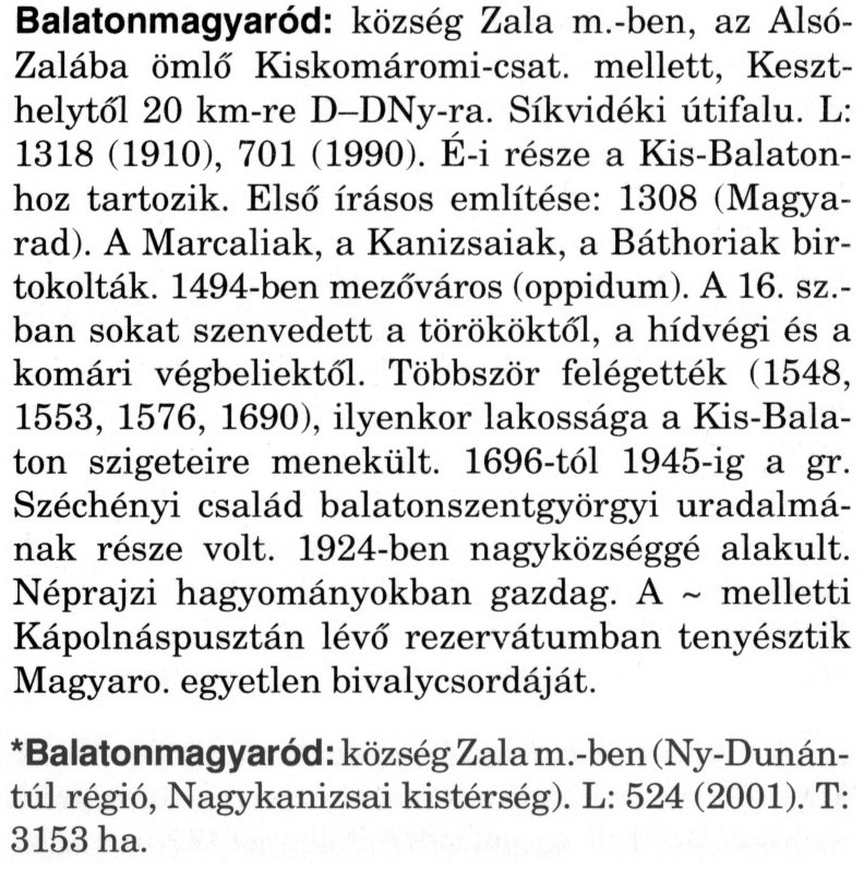 BALATONMAGYARÓD Balatonmagyaród, kisk. Zala vm. kanizsai ... | 24.06 KB | 2008-03-13 09:46:11 | |||