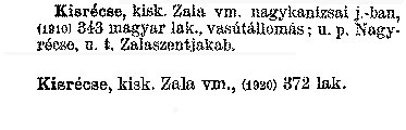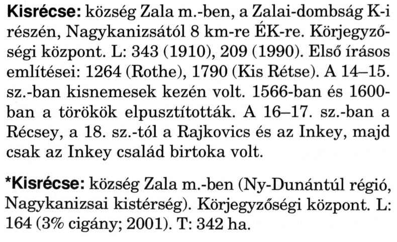 KISRÉCSE 1264-ben: Rethe, 1757-ben: Kiss-Récse. Szláv er ... | 955.17 KB | 2008-04-21 12:18:33 |