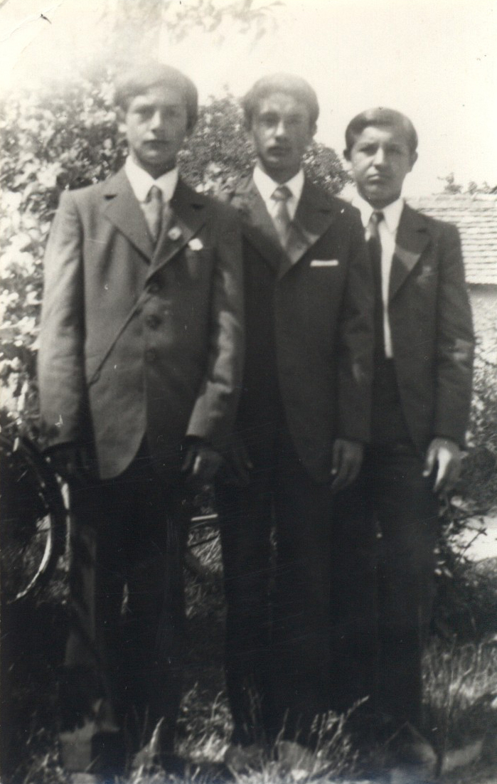 Nyilvános 1995 | 4372 | Rövid leírás | Teljes leírás (104 B) | 1970-75. Régi iskola a háttérben. Balról Jobbra: Tolnai István, Horváth József, Horváth István. |