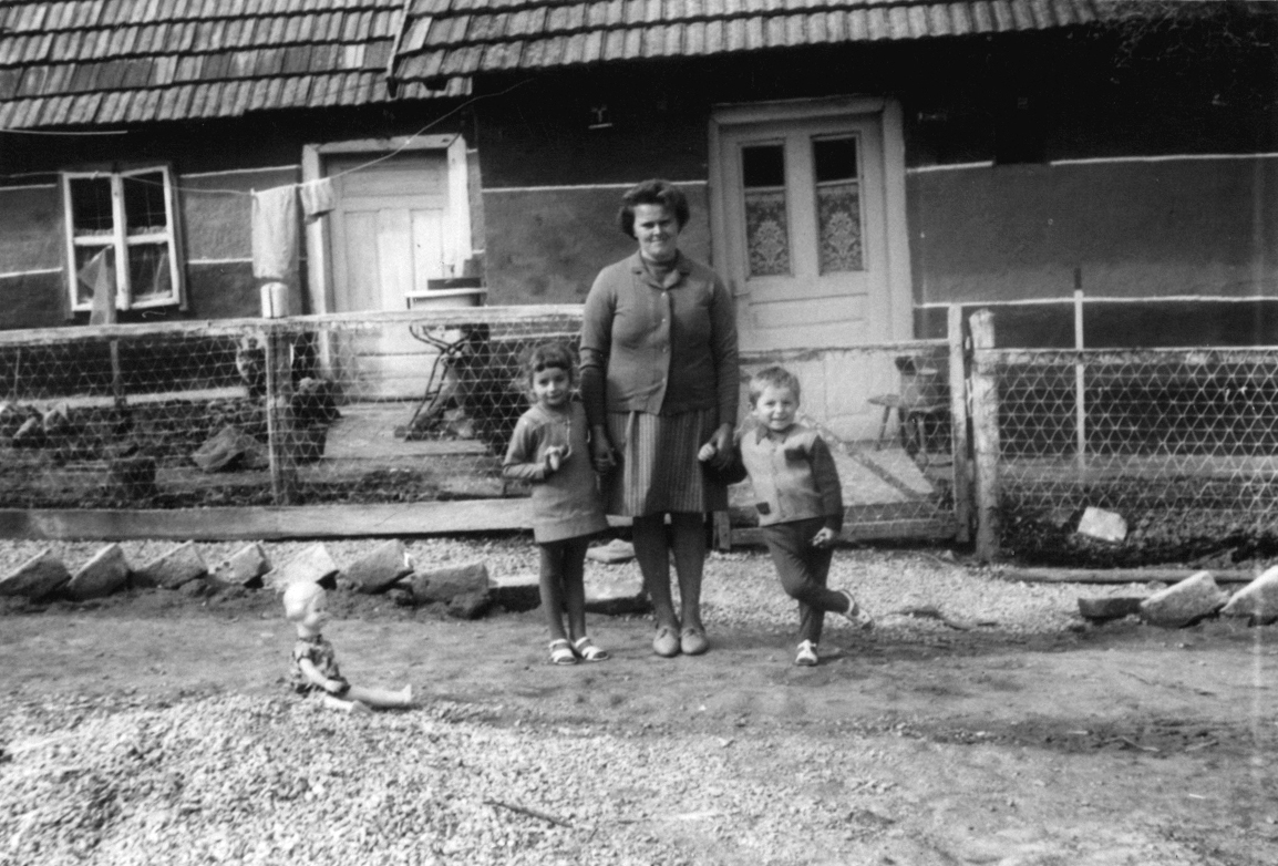 1970-72 körül. Boncz Emma a gyerekeivel. Fő utca 42-es ház előtt.