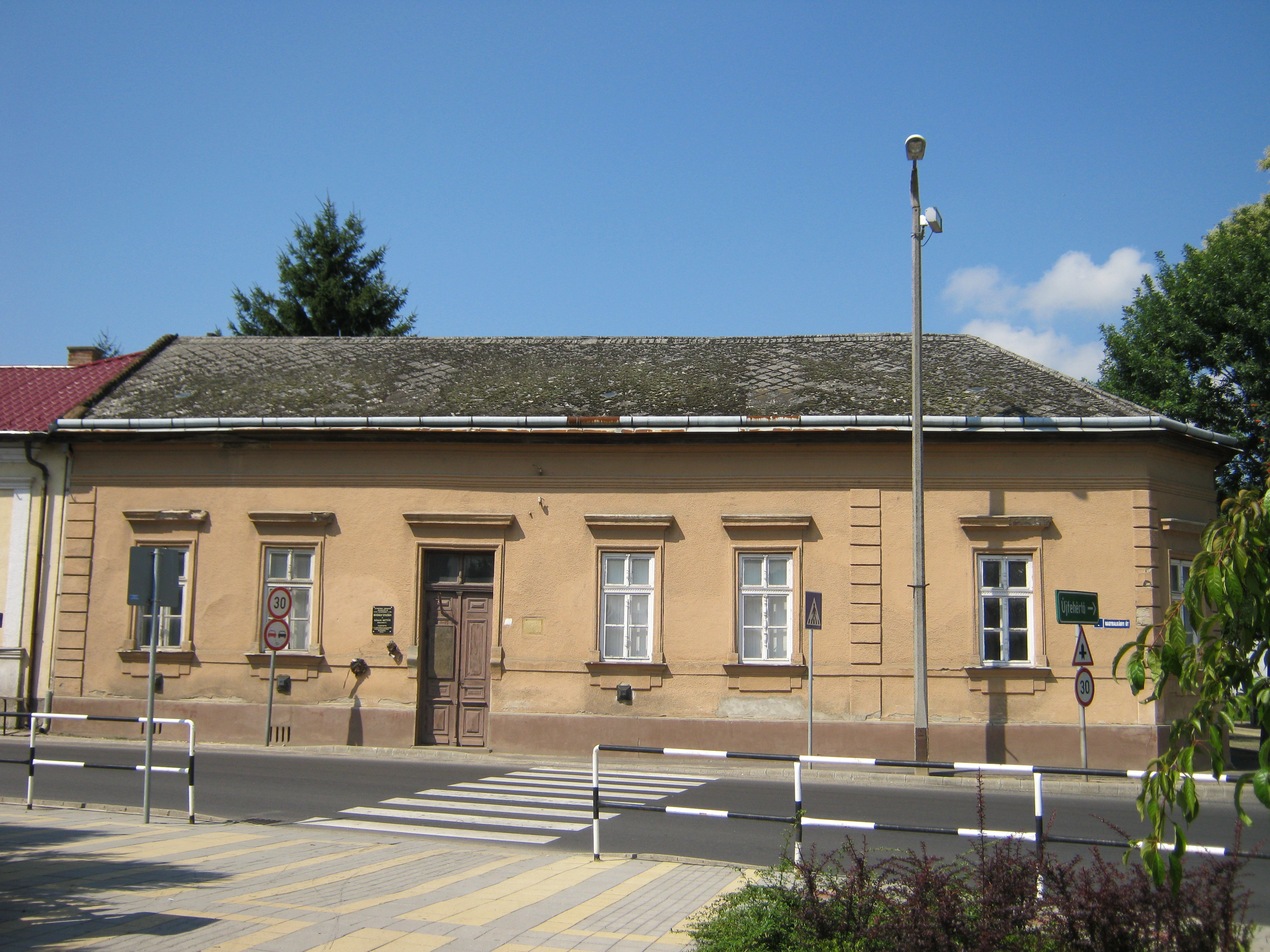 Nyilvános 1774 | 3355 | Nagykálló, Nagybalkányi út 1. | A református templom háta mögött áll a parókia földszintes otthona, ami ma lakatlannak tűnik. Homlokzatán emléktábla jelzi, hogy 1926. november 7-én Kodály Zoltán itt jegyezte le a "Kállai kettős" dallamait. Az akkori református lelkész, ifj. Görömbey Péter látta vendégül. A középkori eredetű páros tánc népi formájában ma is él Nagykálló művészeti együtteseinek köszönhetően, Kodály Zoltán által negyedszázaddal később feldolgozott változata pedig a Magyar Állami Népi Együttes előadásában az egész világon ismertté tette Nagykálló nevét. Érdemes a ház kapcsán megemlékezni id. és ifj. Görömbey Péterről. Az apa 1876-tól 43 éven át volt a nagykállói reformátusok lelkésze, s jelentős egyházi szakírói tevékenységet fejtett ki. Ifj. Görömbey Péter atyja nyomdokait követő, rendkívüli műveltségű, hét nyelven beszélő lelkész és tanár volt. Jó barátságban állt Móricz Zsigmonddal, aki róla mintázta Fáklya című regényének főhősét. Felh. irod.: Harsányi Gézáné: Kálló kincsei. Nagykálló, 2007 A fénykép 2010 augusztus elején készült. |